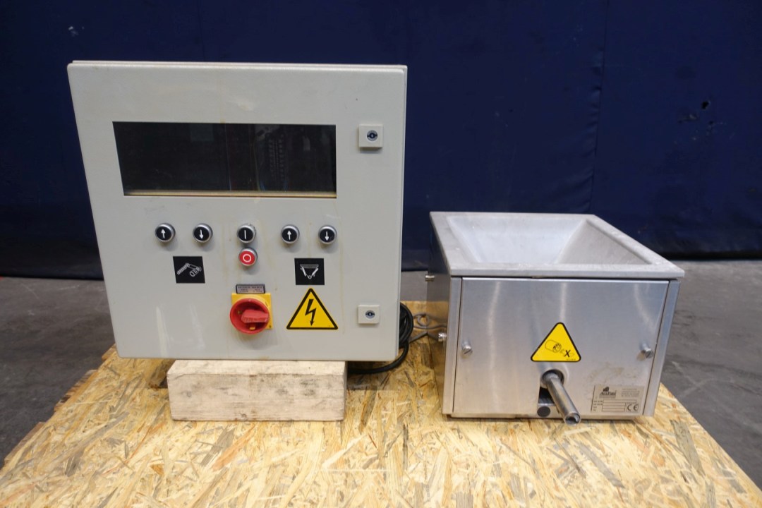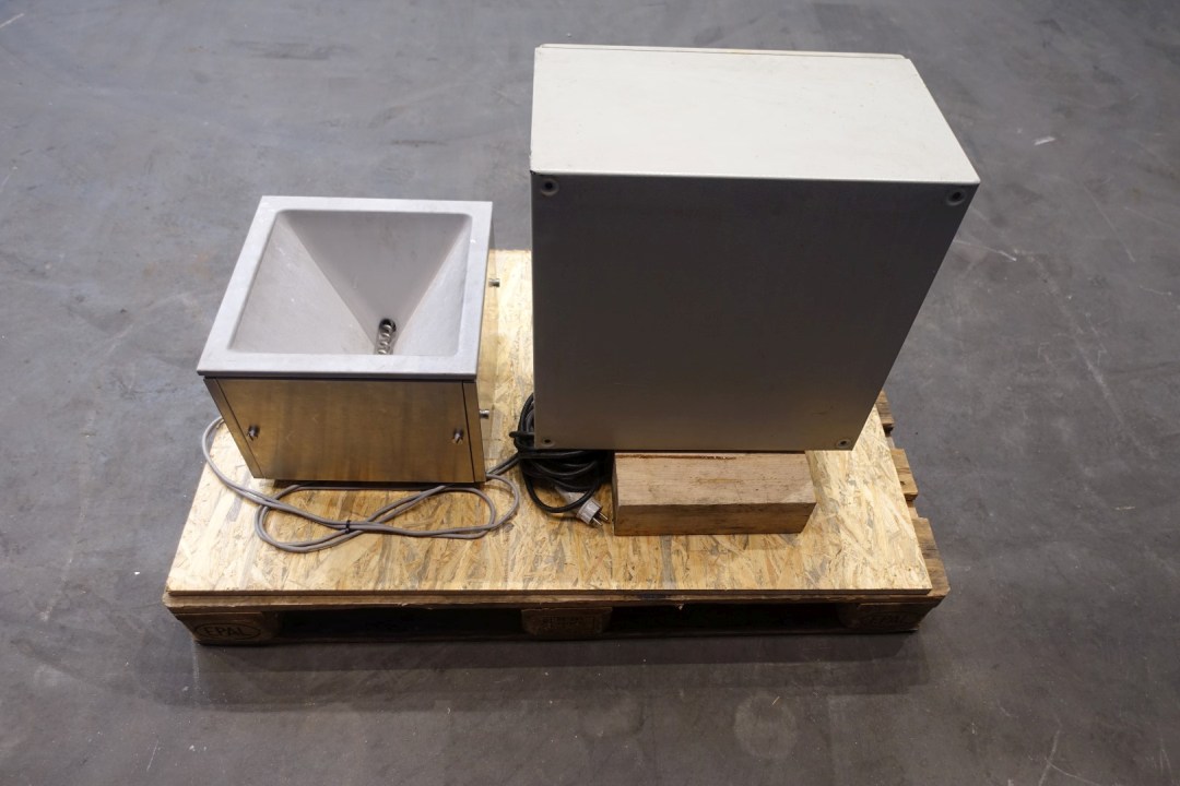 Salt - stabilizer or other dry ingredient dosing system. A Bulk solids metering device with control panel. Manufacturer: Schenck AccuRate VWG 20051 (Mat.-Nr.: F217358.01). Hopper with screw conveyor.Dosing by adjusting the speed of the auger. Dimensions: 100 x 50 x 70 (lxwxh) - weight 95 kg.