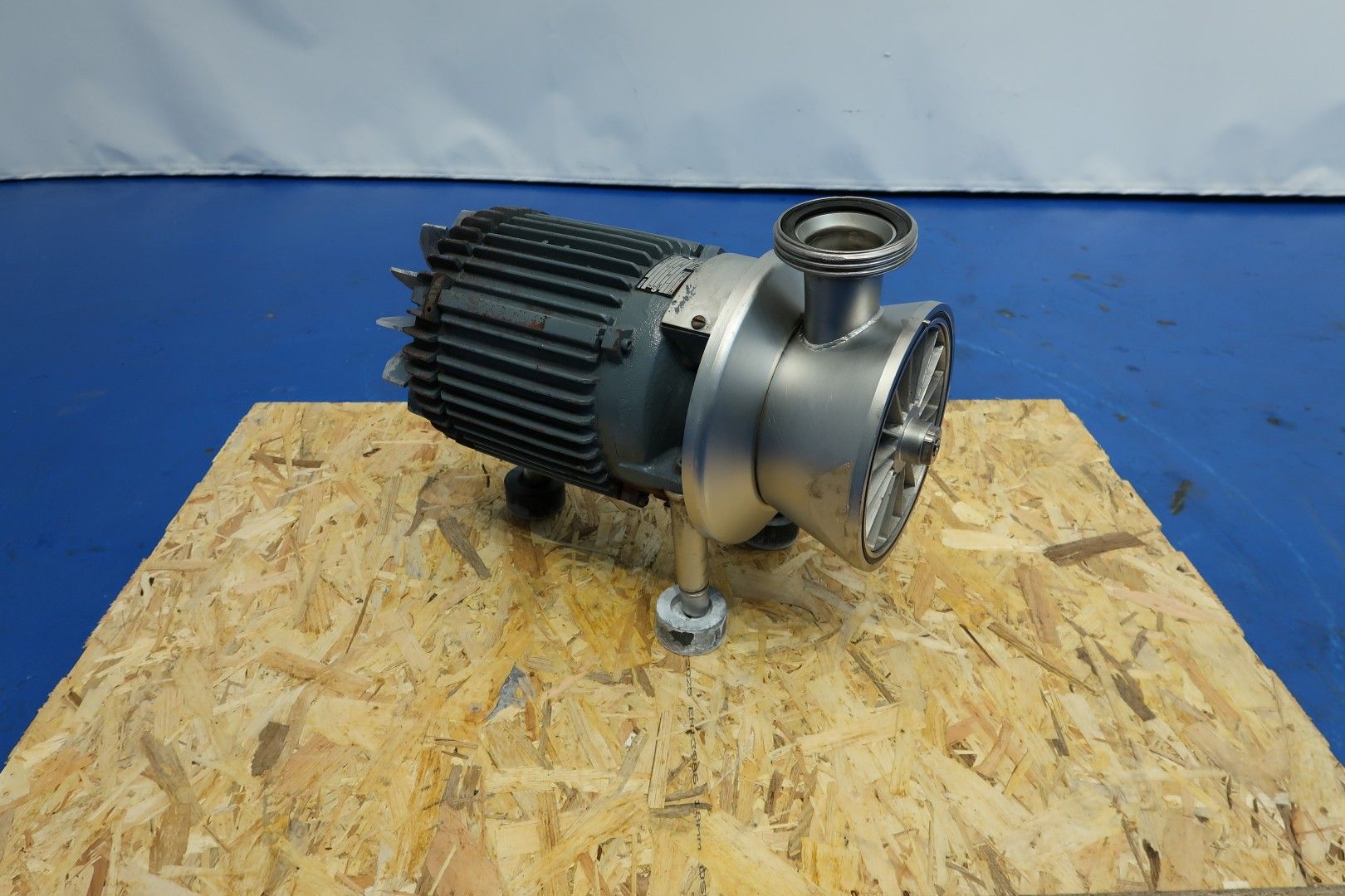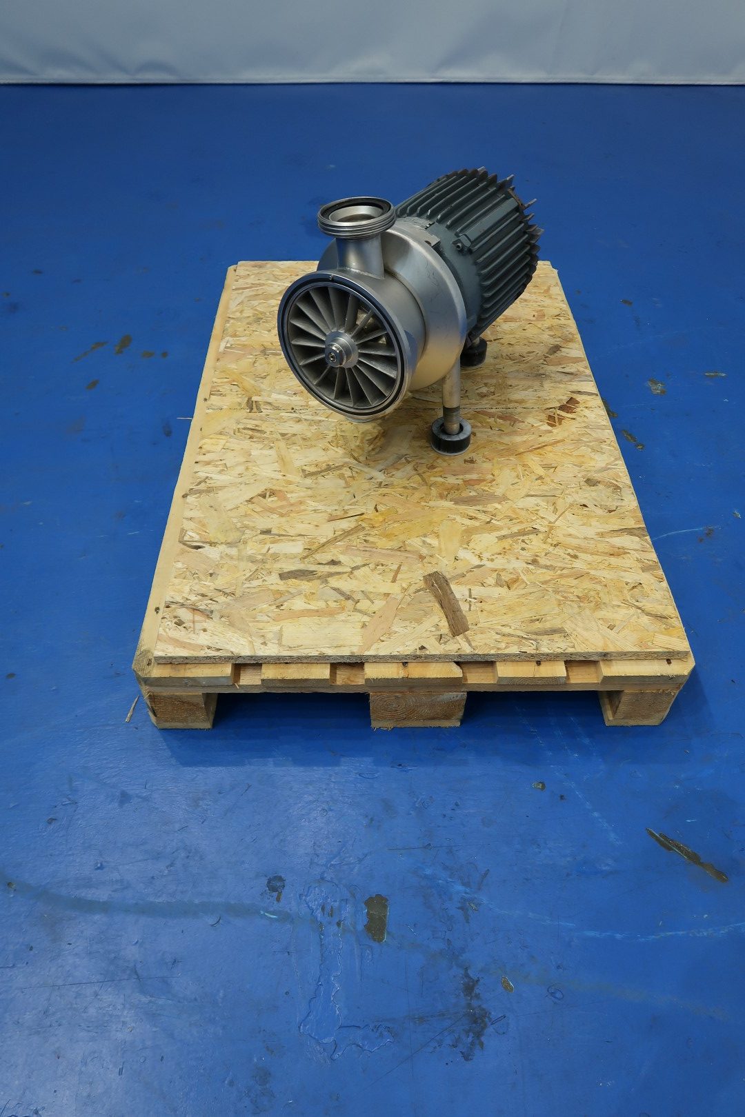 Sanitary centrifugal pump, self suction. motor: 4,0 kW - 8,5 A - 1.430 rpm - 50 Hz. Impellor diameter: 200 mm. Pressure: 0,5 bar. Connections: (in) DN80 Din / (out) 2,5" Din. Total dimensions: 70x27x43 (lxwxh) cm - weight: 113 kg.