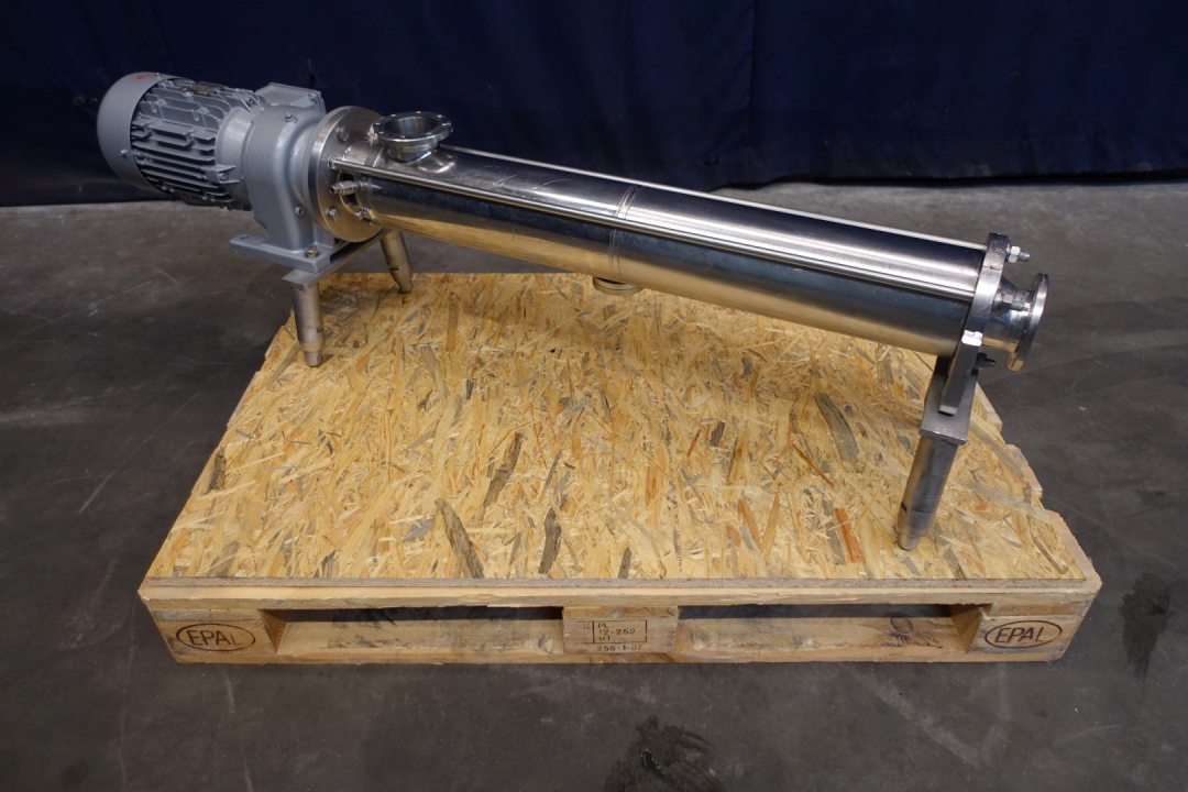 Already reconditioned eccentric screw pump. Stator diameter 40 mm. Stator length 400 mm. Connections: In and Out 2,5'' flange. Current motor: 2,2 kW - 5,2 A - 50 Hz. n1: 1.440 rpm - i: 17,61 - n2 pump speed: 81 rpm. Frame mounted. Total dimensions: 142x30x38 (lxwxh) - weight: 106 kg.