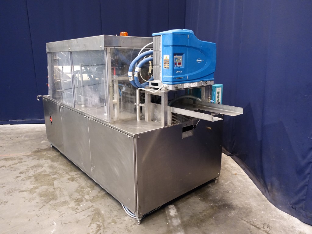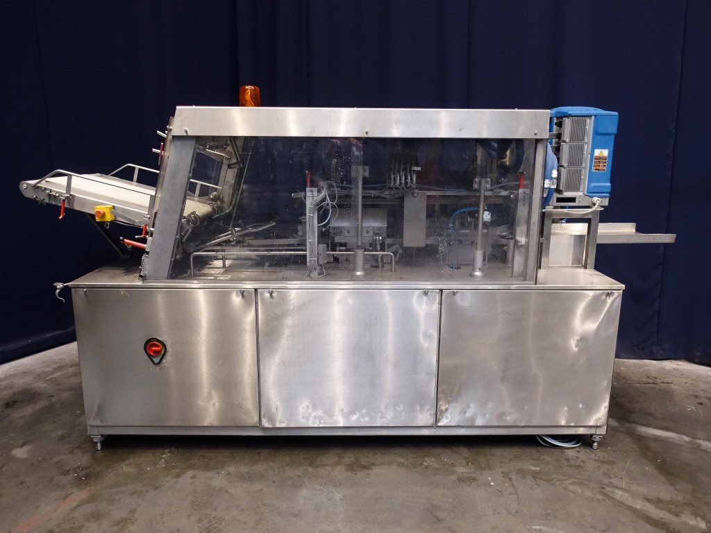 The correct number of this machine is STN14008. Automatic tray erecting and forming machine for closed trays with Nordson Pro Blue 10 hotmelt glue device with 5 hoses and 9 glue points. Tray size standard 3 x 4: 95 mm, ± 29,5 x 37,5 cm. The trays are formed in 3 steps. Siemens Simatic S5 controls. 19.772 working hours. Total dimensions: 340 x 130 x 190 cm. Weight: 900 kg. Users manual, sparparts list and elektical scheme in German language.