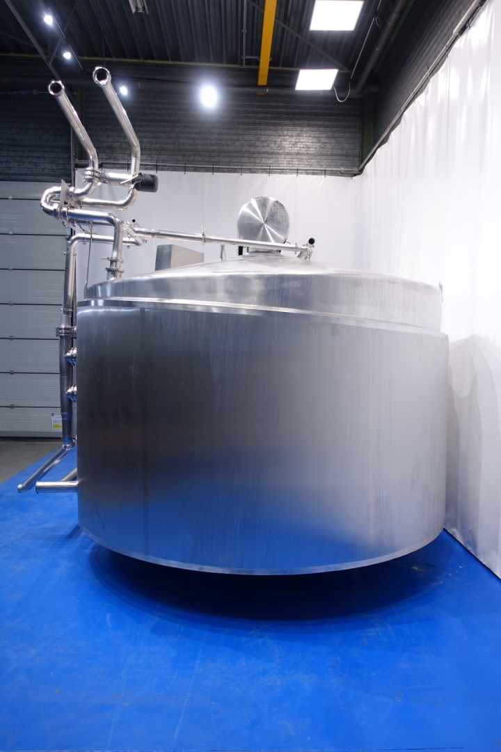 APV CurdMaster Cheese Vat 18.000 liter. Specifically designed for the producing of high- quality cheese curd and whey. The vat is suitable for the producing of most cheese types ranging from hard and semi hard varieties like Gouda, Cheddar, Edam, Tilsiter etc, to soft/fresh varieties like Blue Cheese and Feta as well as Pasta Filata. Stainless steel vat, double jacketed and insulated. Manhole with grid and sensor, light. Whey suction through the side of the vat on 75-50% of volume. Sensors for pressure (for volume), and temperature. Breather with protection raster, steam connecting to the double jacket to heat the curd during the process.. 2 x outfeed pneumatic butterfly valves. CIP cleanable by spray-balls. Complete with piping and infeed/outfeed valves. Control panel and operation panel on vat to control agitator speed, temperature, and whey – curd valves Total dimensions: 460x380x308 (lxwxh) - weight vat: 3.050 kg - leg/feet weight: 400 kg.