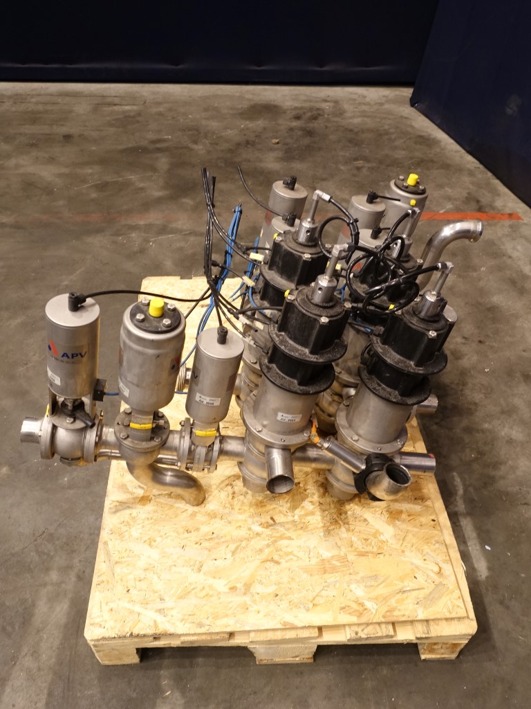 Small manifold with 4x mixproof valves, 4-way, with seal lift. 2x mixproof valves, 2-way. 3x ball valves. 4x butterfly valves. Diameter: DN50.