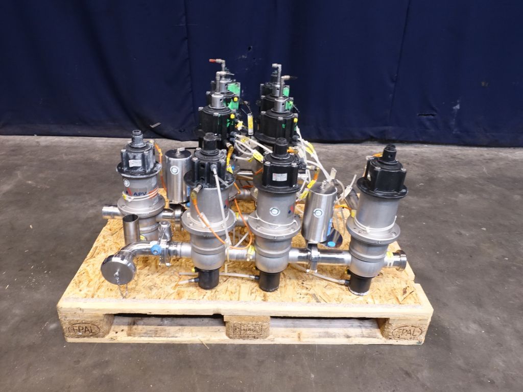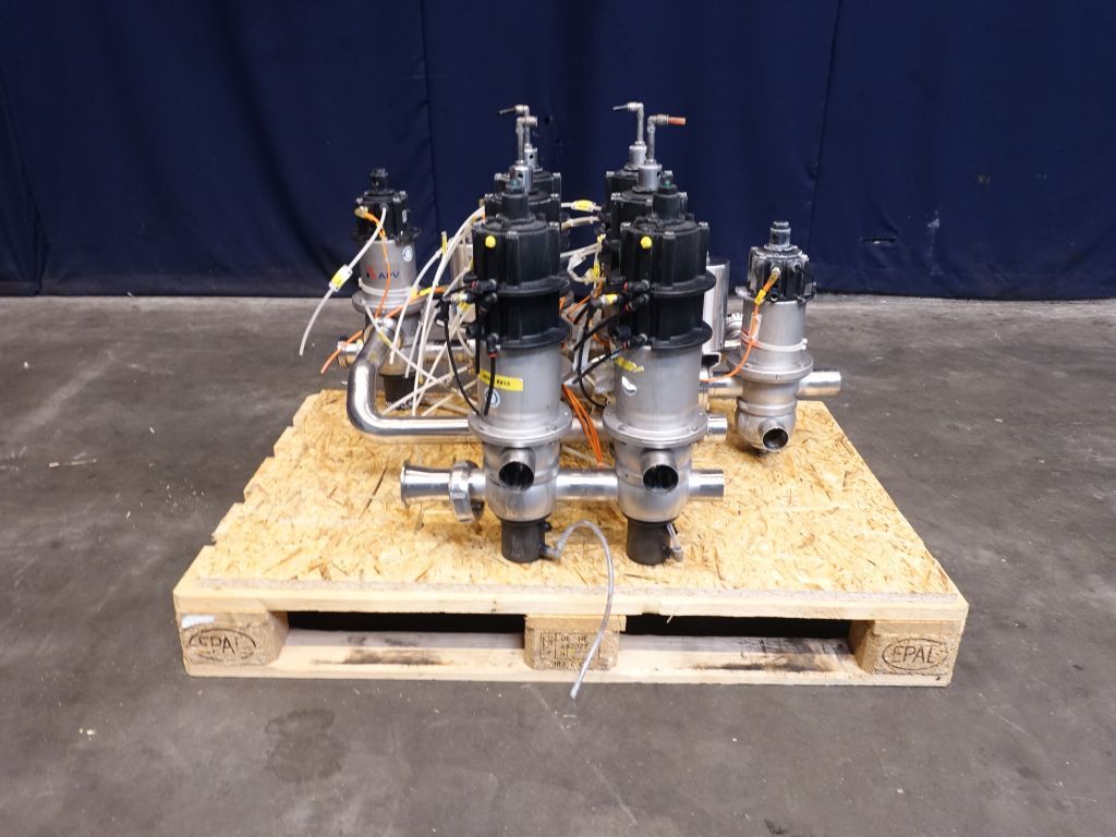 11 Mixproof valves with seat lift. Pneumatic activated. 7 x 4 way and 3 x 4 way. Diameter: 2/" Weld-Weld