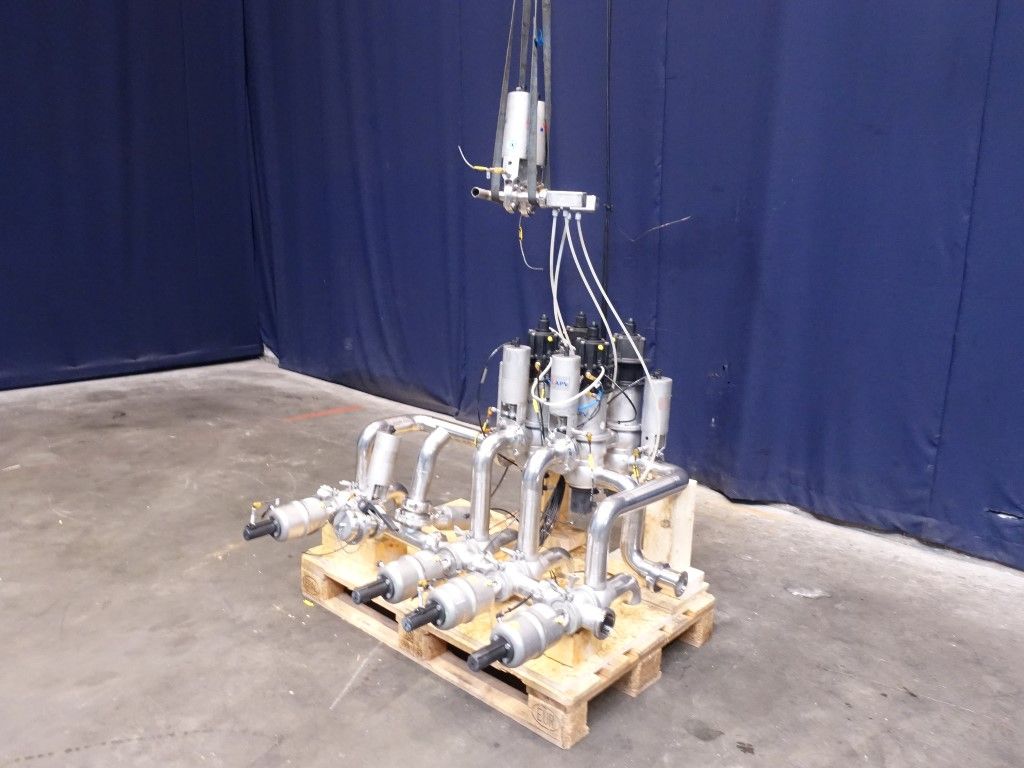 4 x SW44 2,5''- 4 way single seat valves with SMS connections. 4x DAX33- 2,5'' - 4 way double seat mixproof, with seal lift. Weld-weld.