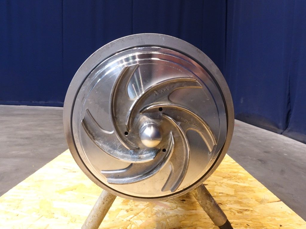 Sanitary centrifugal pump. Current motor: 5,5 kW - 6,3 A - 2855 rpm. Impellor diameter: 185 mm. Connections: 2,5'' / 2'', SMS.