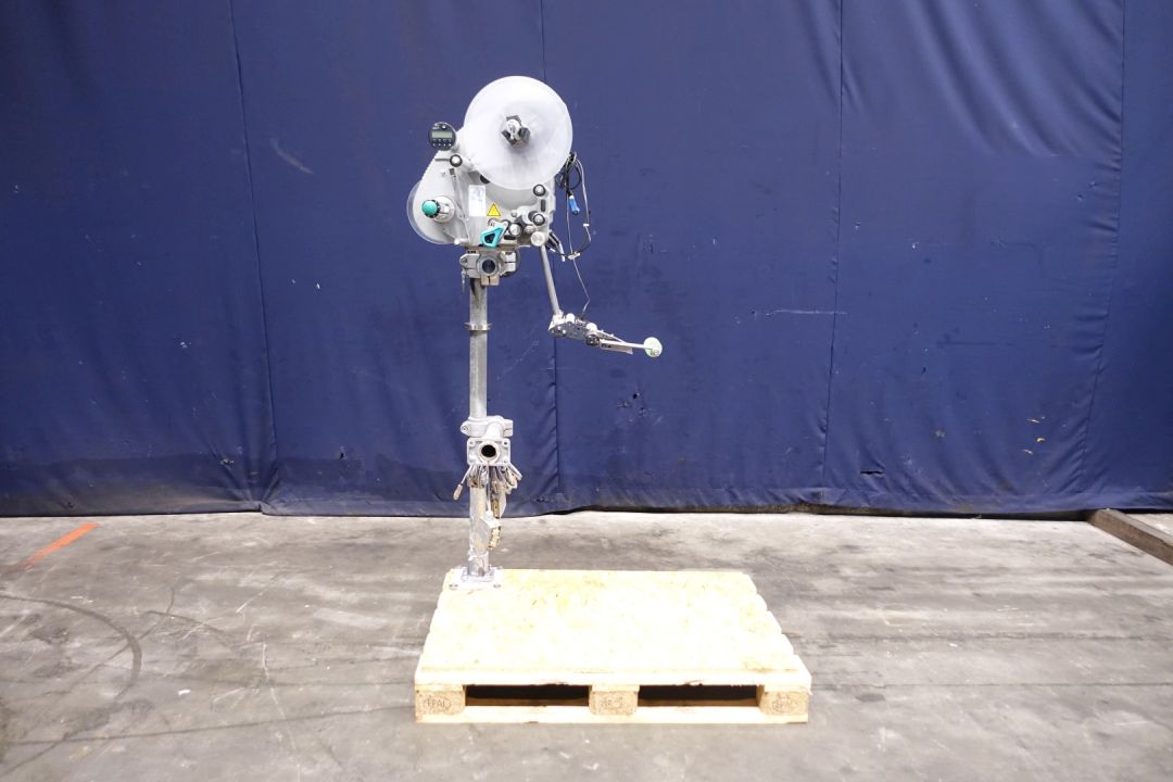 Labeling machine for selfadhesive lables. 1 Side top. Has been runnig with a Miromatic MDA 2 filling machine (STN15324) and with other labeller (STN15326). Total dimensions: 120 x 80 x 190 cm. Weigth: 107 kg. Documentation available: operational manual (in German and English), technical manual (in English), diagrams and spare parts diagrams-list (in English).