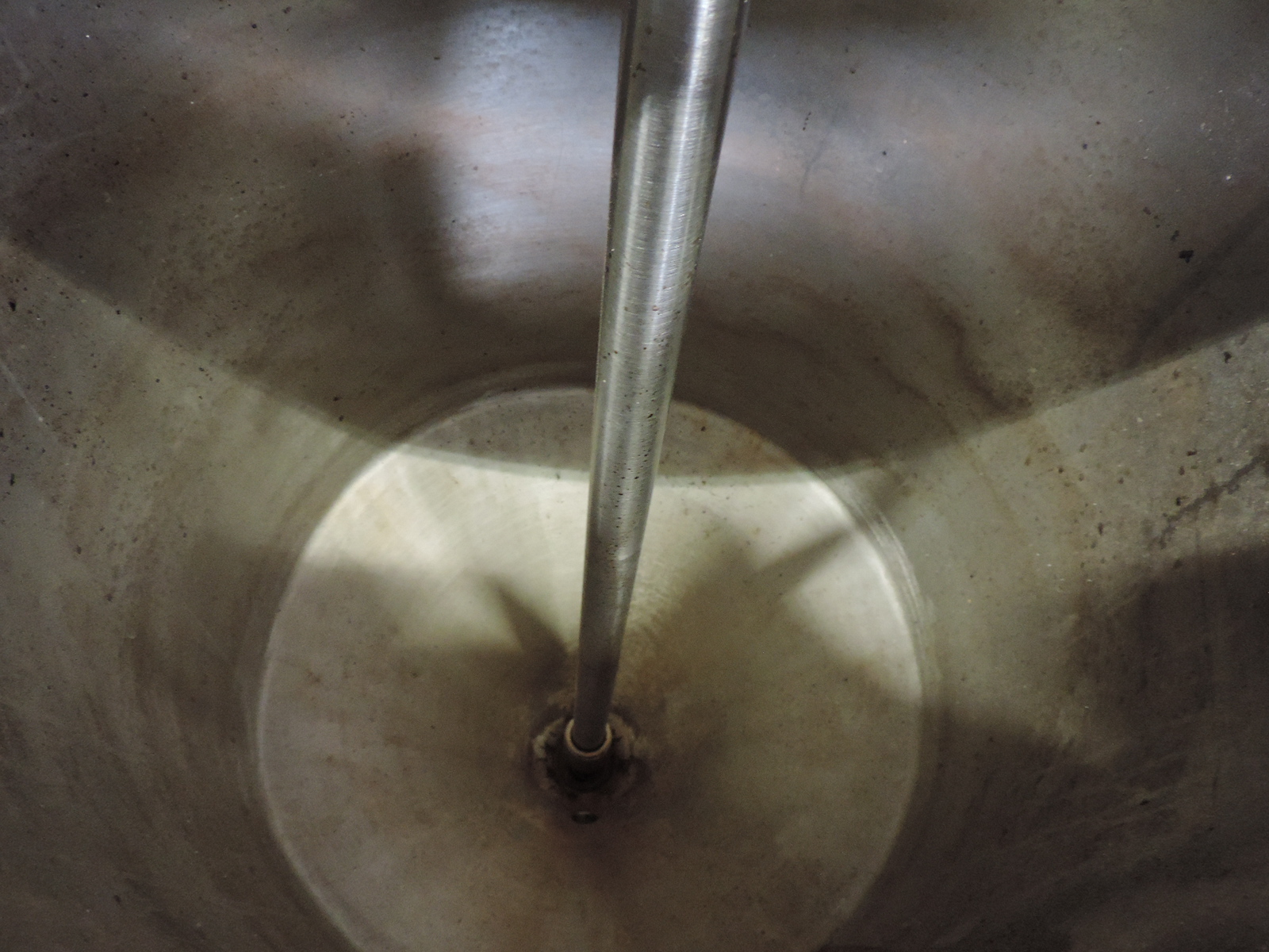 Single jacketed tank with drain agitator. Three legs. Engine: 380 V - 0,75 kW - 1680/88 rpm - 2,15 A. Inner dimensions: diameter 40 cm, heigth 50 cm.