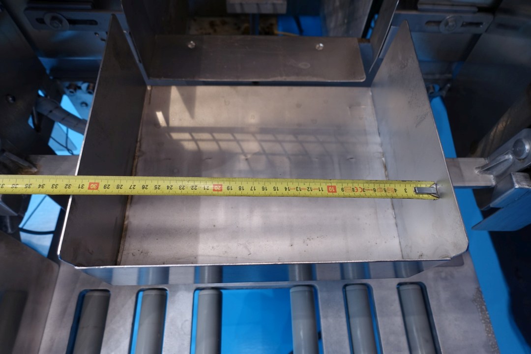 Semi automatic packer, for pefolded displays. Pneumatic controls. Filling principle: side loading. Dimensions: 207x90x172 (lxwxh) cm.