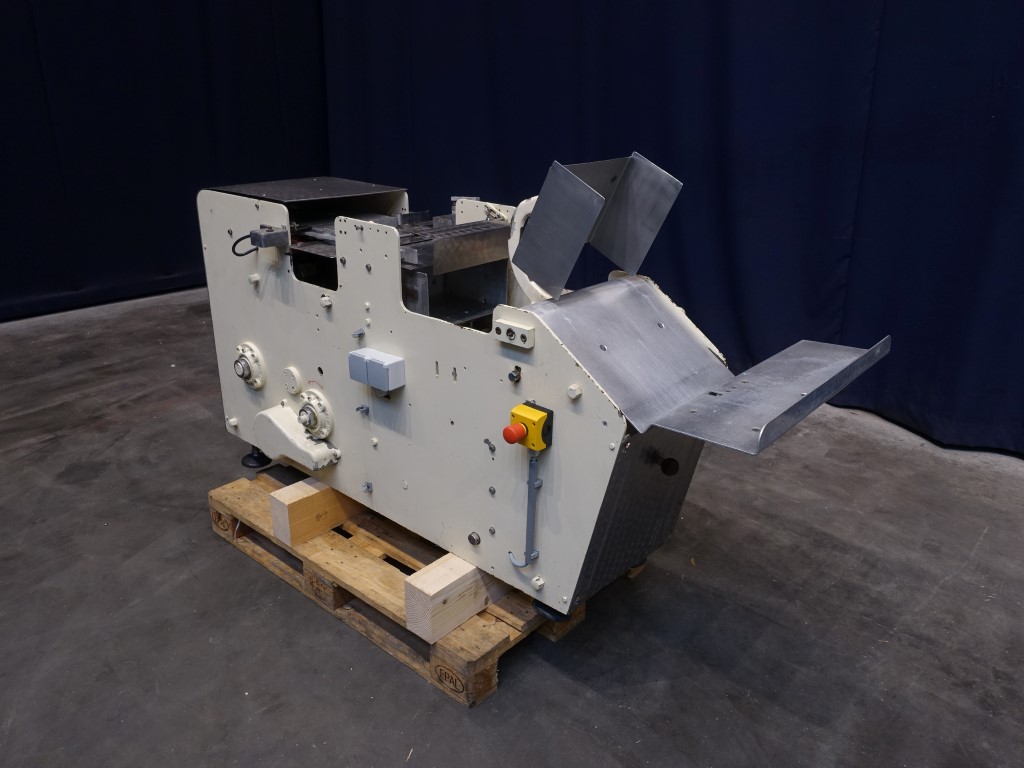 Semi automatic case packer for carton boxes. Box size: 250 x 290 x 150 mm. Control panel with relay control. Total outside dimensions: 200 x 100 x 130 cm.