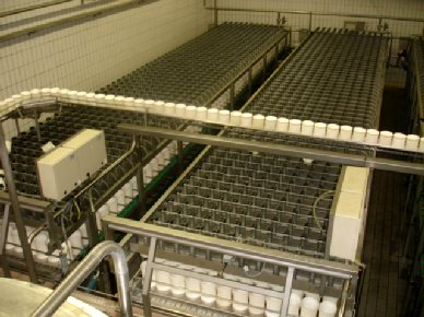 Cheese press, for edamm moulds of 1,7-2 kg. 12 wide 54 long = total 648 pneumatic cylinders - dimensions: 2,23 x 11,05 mtr..This is a part of a complete Edammer cheese line, existing out of STN8323 till STN8330.