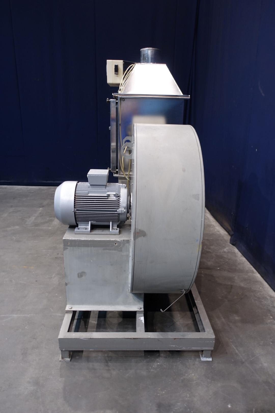 Ventilator unit Hansa blower with camfil filters. Power 10kW - speed 2.930 upm. Density 1,2 kg/m3 - temp 20 C. Flange connection 21,5 cm. With pre and hepa filter. Previously used on aseptic Combibloc machine. Dimensions: 210x110x210 (lxwxh) cm, weight: 657 kg's.