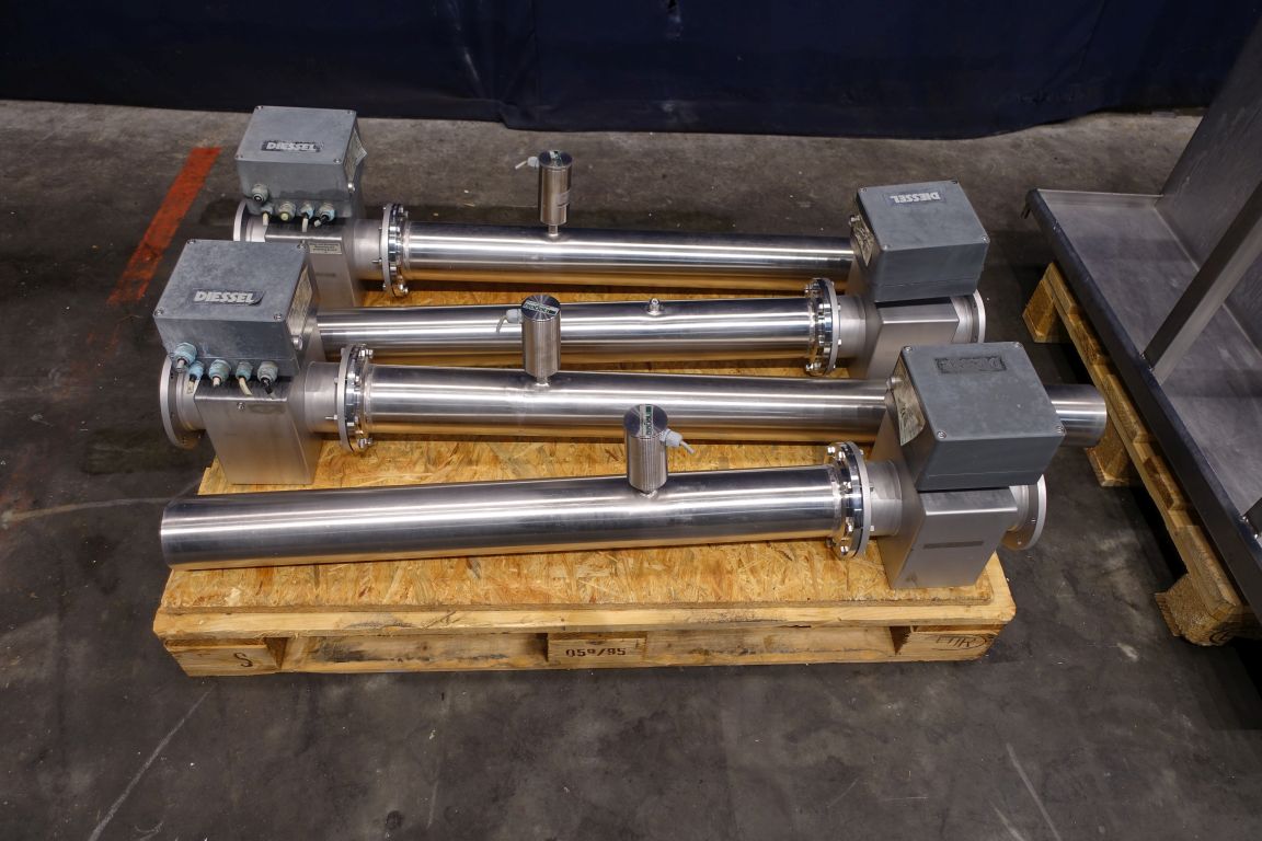 4 Reception units for truck unloading by gravity. 4 Flow transmitter Diesel (total count send to scada system), 1 panel for reception units with start/stop button for driver. Emptying of trucks with Raw milk by Free fall to the basement by gravity to lower placed tanks, capacity depending on the connection (outlet size) on the truck. Total dimensions of reception unit: 130 x 160 x 150 cm.