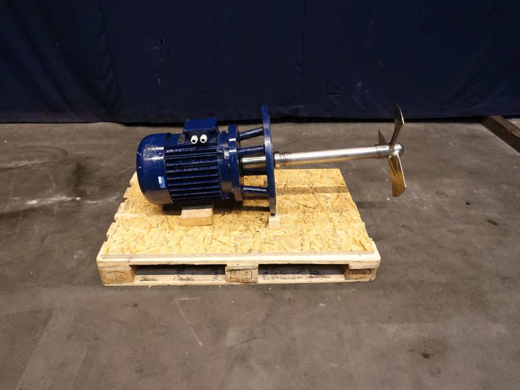 Propellor agitator, Motor 5,5 kW - 870 rpm, shaft length: 60 cm 1 propellor on the shaft, propellor diameter: 60 cm, 3 blades. Flange for mounting on a tank.