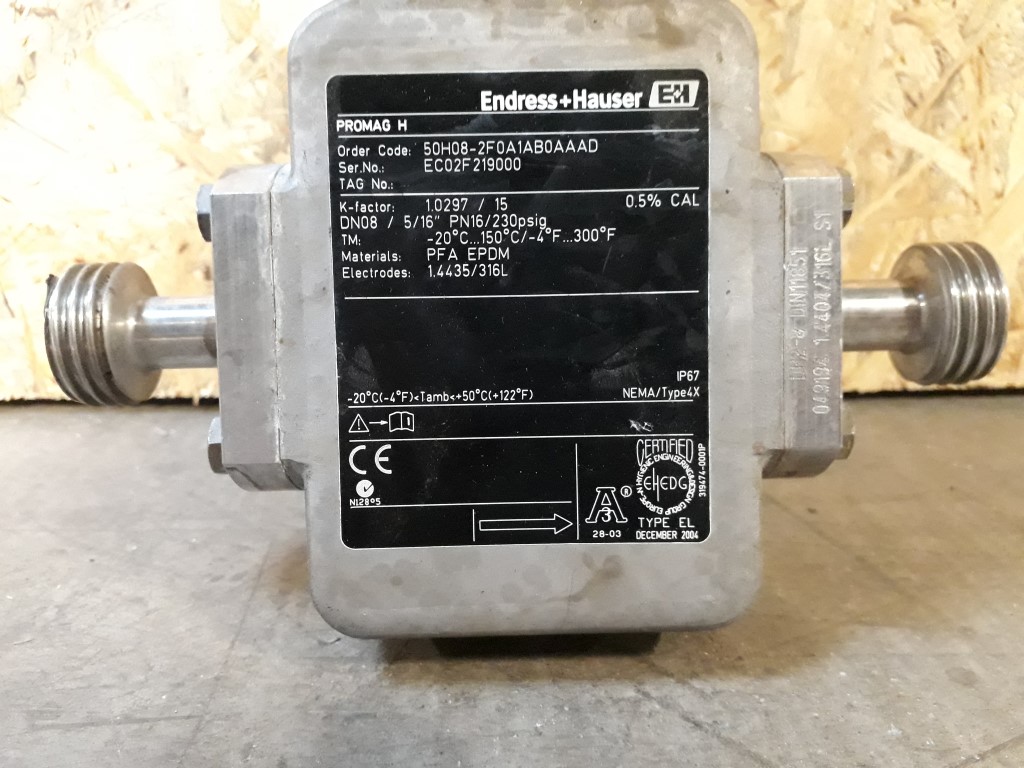 Calibrated MaG flow transmitter by Endress + Hauser in February 2023. Endress + Hauser Promag 50H8 Range 200 - 1.000 ltr/h. Connections: DN8, DIN. Electronic head with display.