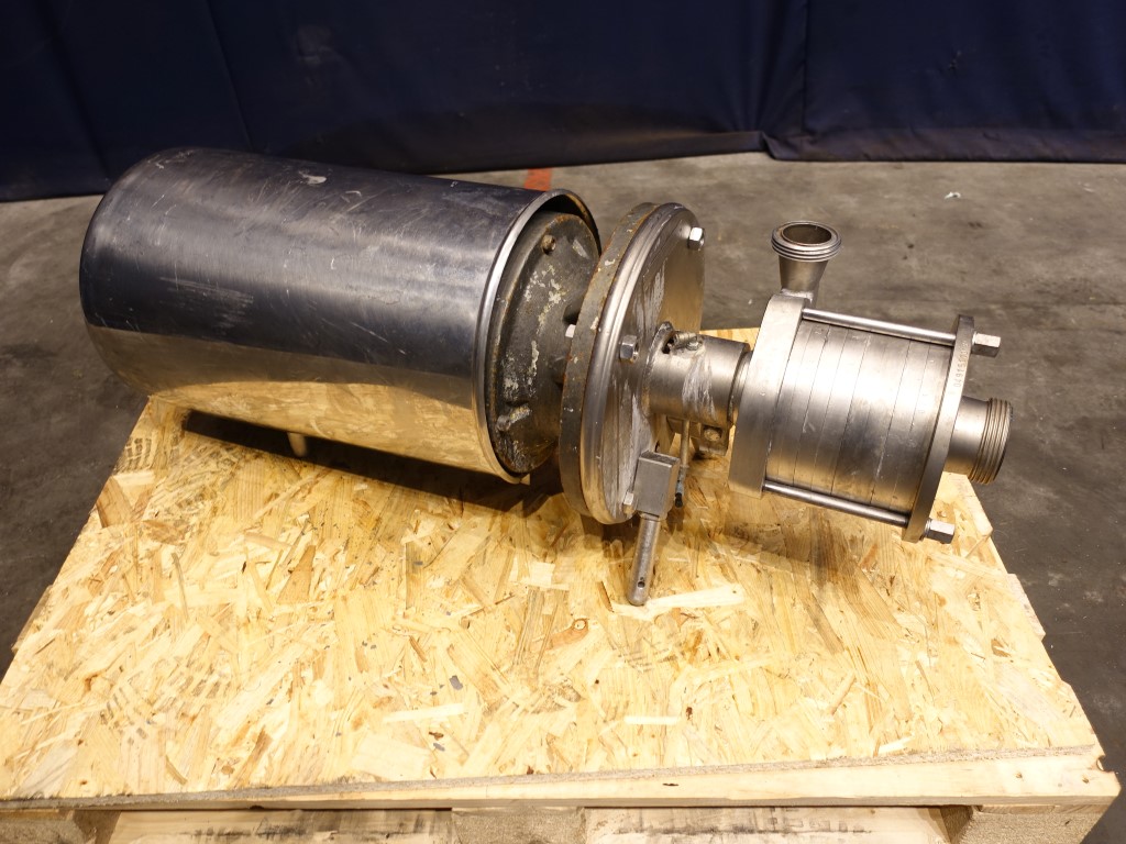 Sanitary centrifugal pump. Current motor: 12,6 kW - 20,8 A - 2915 rpm. 5 Stages. High pressure. Impellor diameter: 160 mm. Flushed seal. Connections: 2,5'' / 2'', SMS.