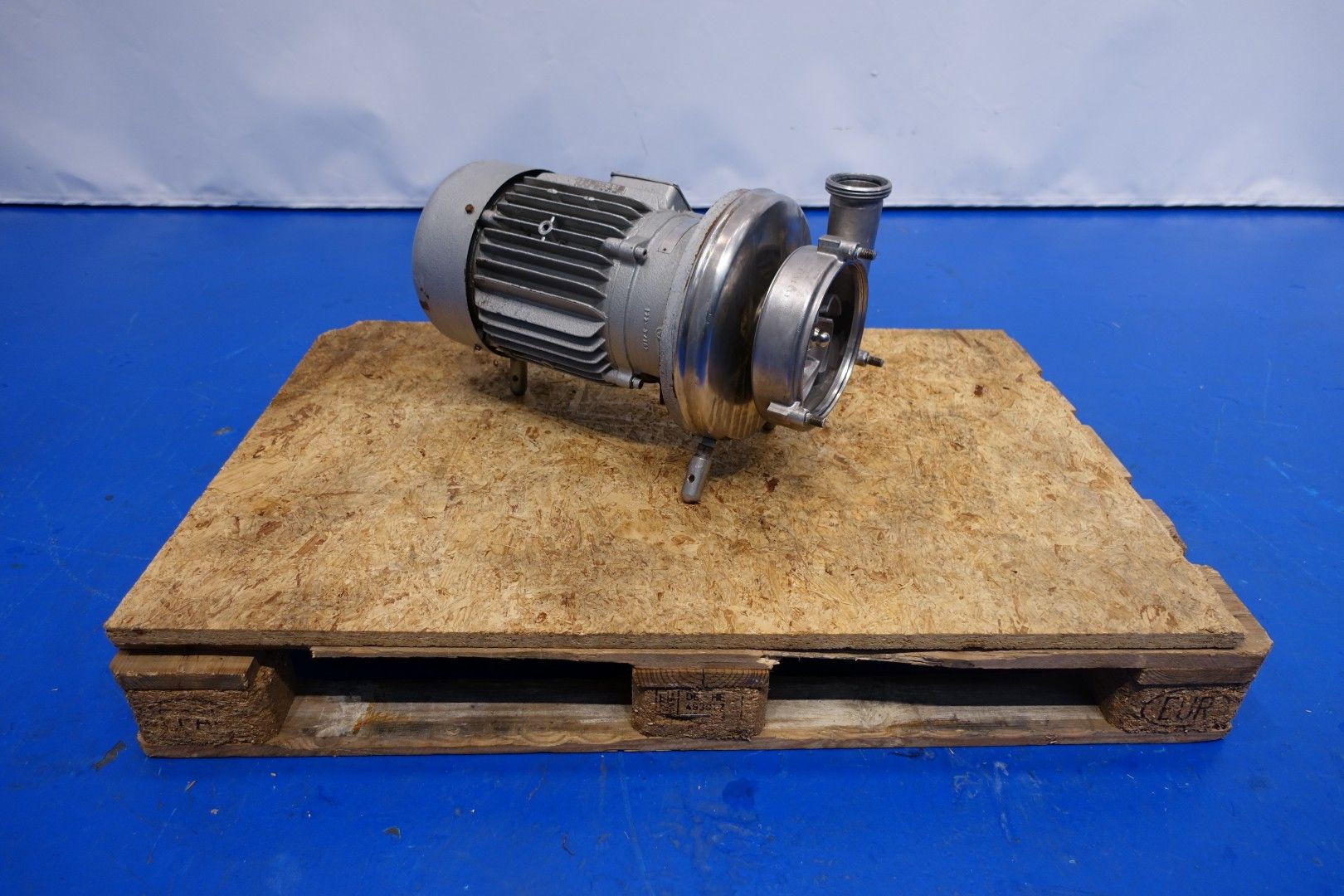 Sanitary centrifugal pump. Current motor: 7,5 kW - 15,0 A - 2.880 rpm. Impellor diameter: 175 mm. Connections: (In) 3" Din / (Out) 2,5" Din. Total dimensions: 75x30x36 (lxwxh) cm - weight: 112 kg.