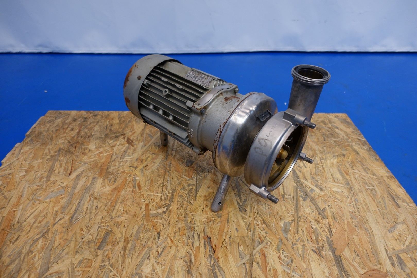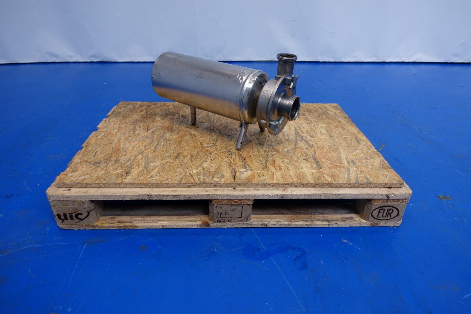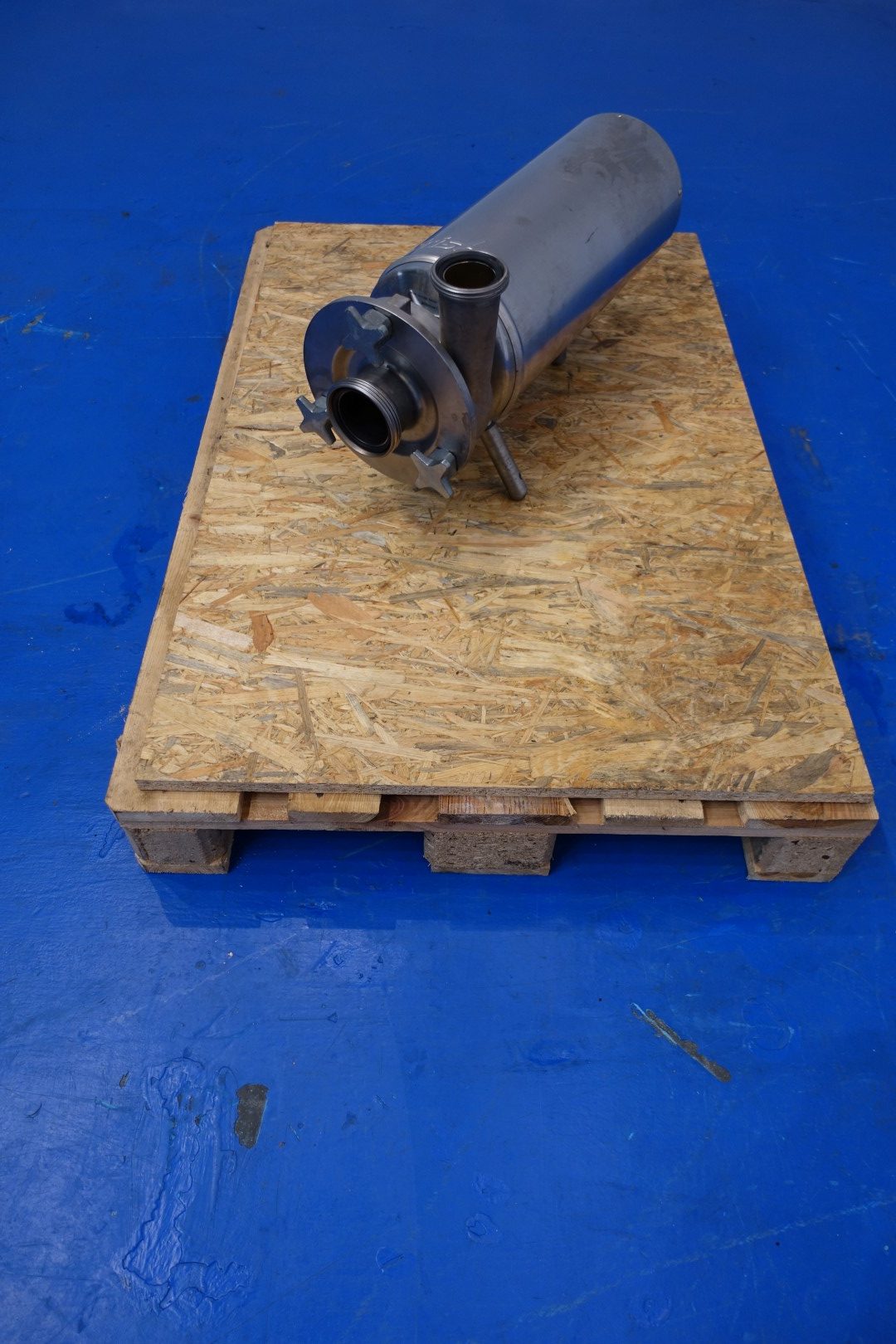 Sanitary centrifugal pump. Current motor: 4,0 kW - 6,9 A - 2.860 rpm. Impellor diameter: 125 mm. Connections: (In) 3" Din / (Out) 2,5" Din. Total dimensions: 61x23x35 (lxwxh) cm - weight: 78 kg.