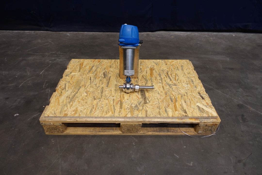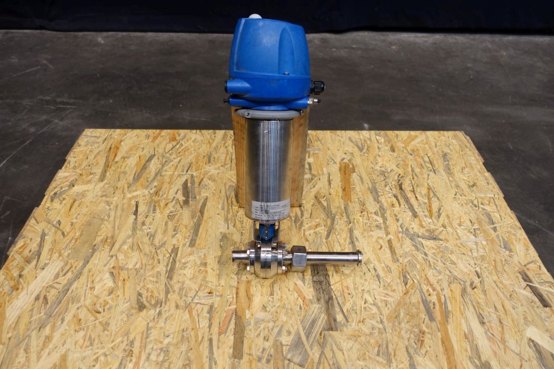 Single pneumatic butterfly valve. Pneumatic activated. Connections: 1". Min air pressure 4,8 bar - Max pressure 8,0 bar. Dimensions: 20 x 20 x 50 cm. Weigth ca. 7,5 kg's.