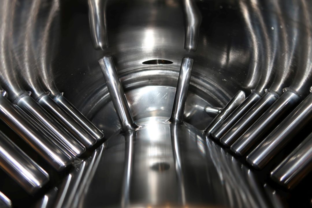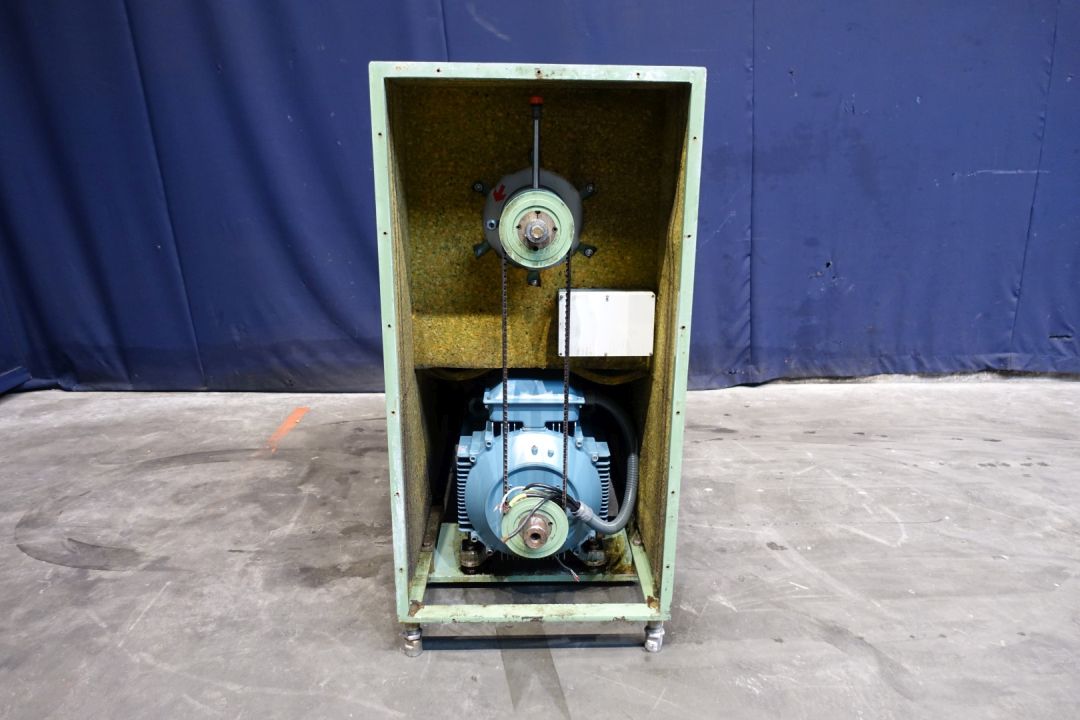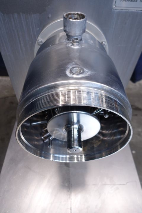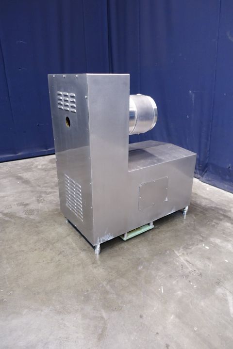 "Stainless steel pinmixer with 1 cylinder. Cylinder diameter 300 mm, length 300 mm. 14 pins on the shaft/rotor and 24 pins on the double jacketed cylinder housing. Motor power: 37 kW - 72 A - 1.475 rpm. Design pressure: 80 bar, max. work temperature 100 °C. Excluded: front lid, controls and documentation. Total dimensions: 68 x 119 x 140 cm - weigth: 572 kg's. "