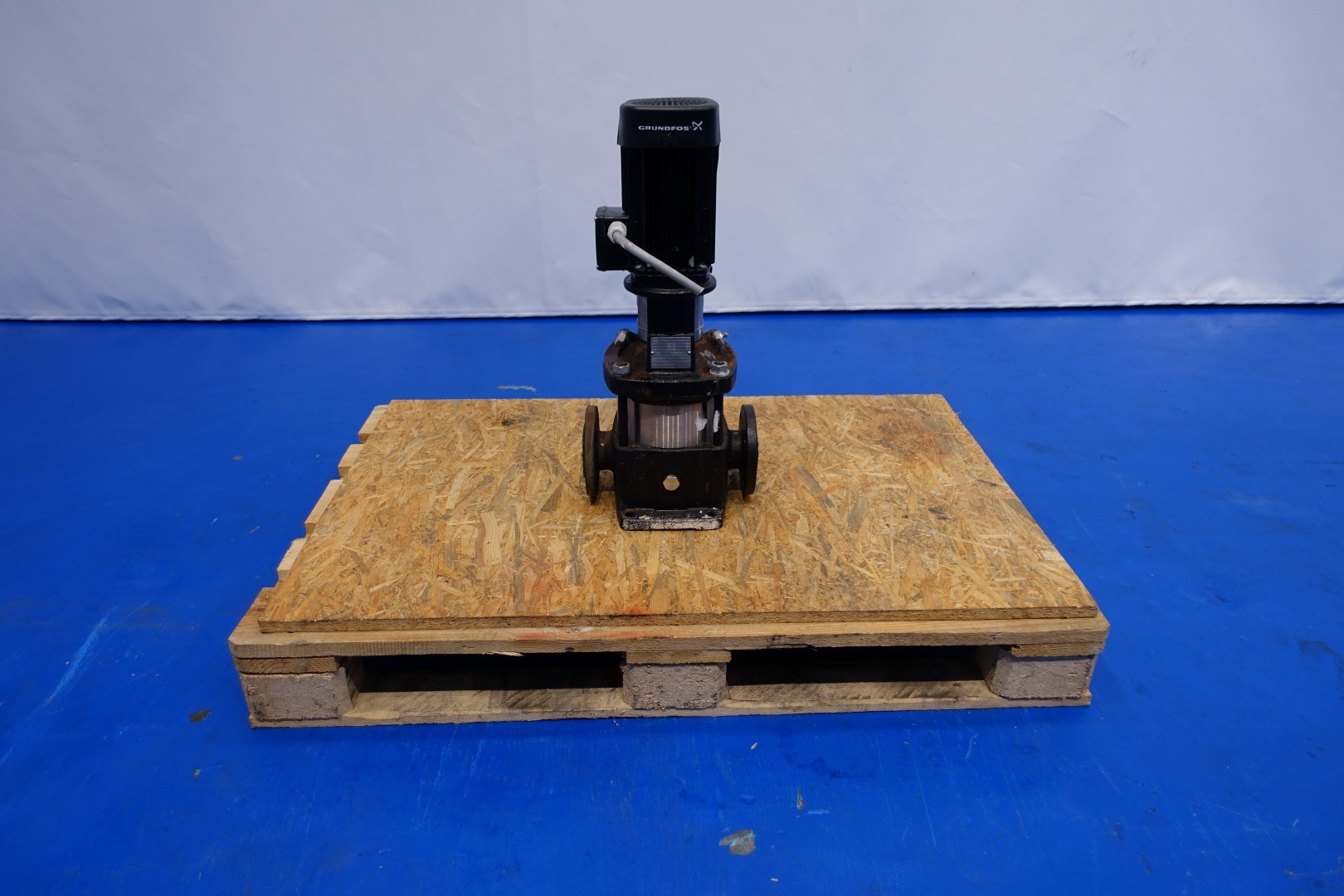 Grundfoss water pump. Non sanitairy. Serial number motor: DE6204.27.C3. Connections: (In) 2,5" Flange / (Out) 2,5" Flange. Total dimensions: 28x24x63 (lxwxh) cm - weight: 70 kg.