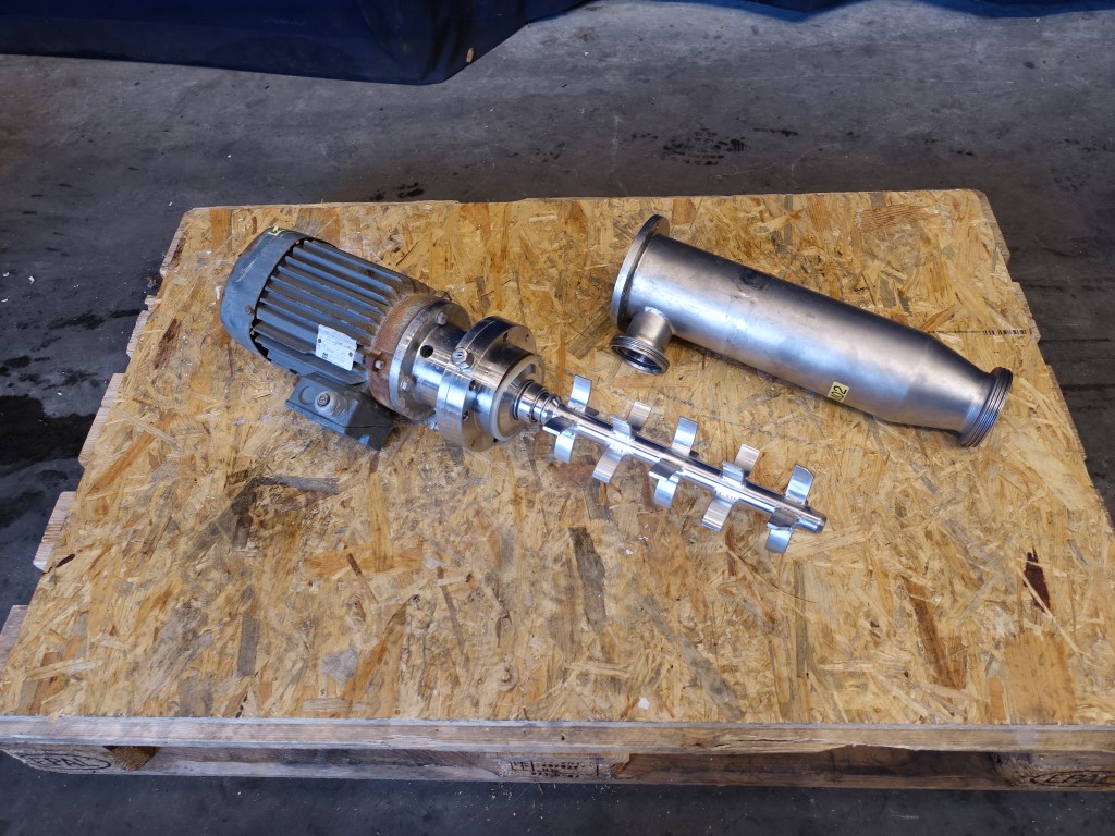 Dynamic In-line Mixer RM is the variable tube mixing system for a wide range of mixing processes, this one used for inline mixing of yoghurt/desserts and fruit. Can also be used for mixing fruit in ice cream and acids and aromas in jam and fruit gum. This Dynamic flow mixer has flushed seal, a volume: ± 2 liter. Maximum throughput depending on product. Connections: 2''/3'', DIN. Motor: 1,5 kW - 3,5 A - 1410 rpm.