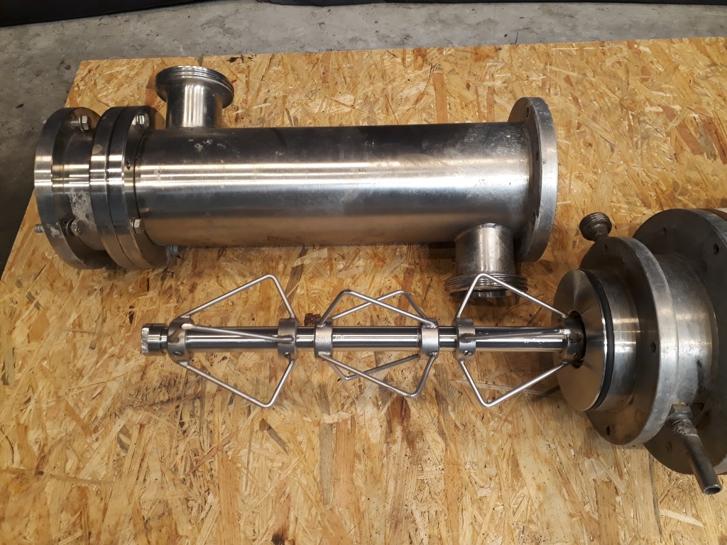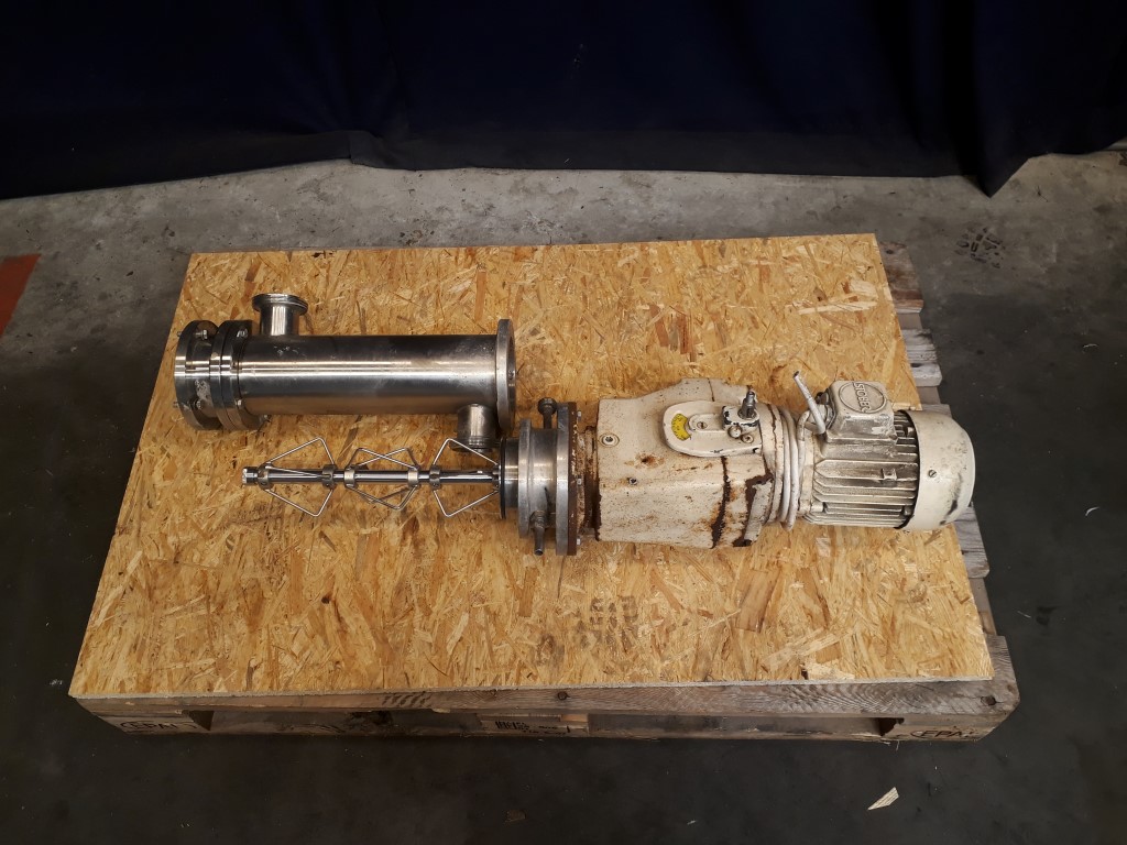 Mixer. Diameter: 100 mm. Length 320 mm. Variable speed of the mixer by mechanical variator. Connections: 2''/2'' DIN. Motor: 1,1 kW - 380 V - 2,6 A - 50 Hz - 2800 rpm.