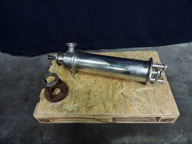 Inline mixer with 2 screw shaped spiral mixers, integrated into each other. Excluding motor. Connections inlet 2.5'' Flange/ outlet 6x 1.5''Clamp.