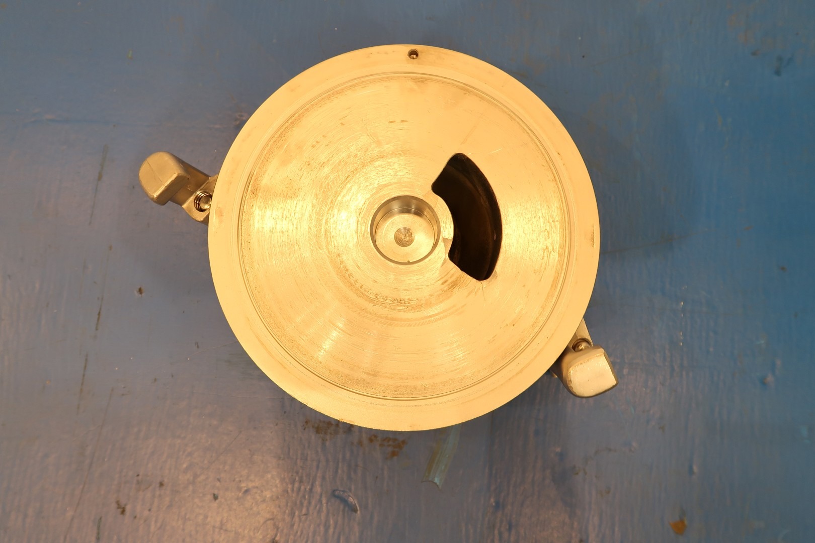 Sanitary centrifugal pump, self suction. motor: 4,0 kW - 8,5 A - 1.430 rpm - 50 Hz. Impellor diameter: 200 mm. Pressure: 0,5 bar. Connections: (in) 3" Din / (out) 3" Din. Total dimensions: 70x26x39 (lxwxh) cm - weight: 116 kg.