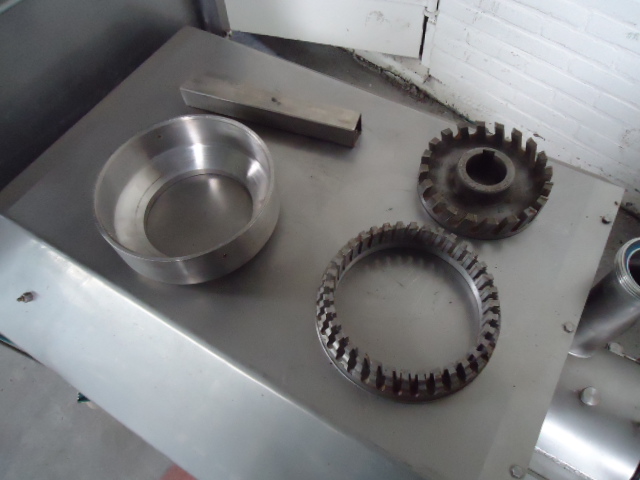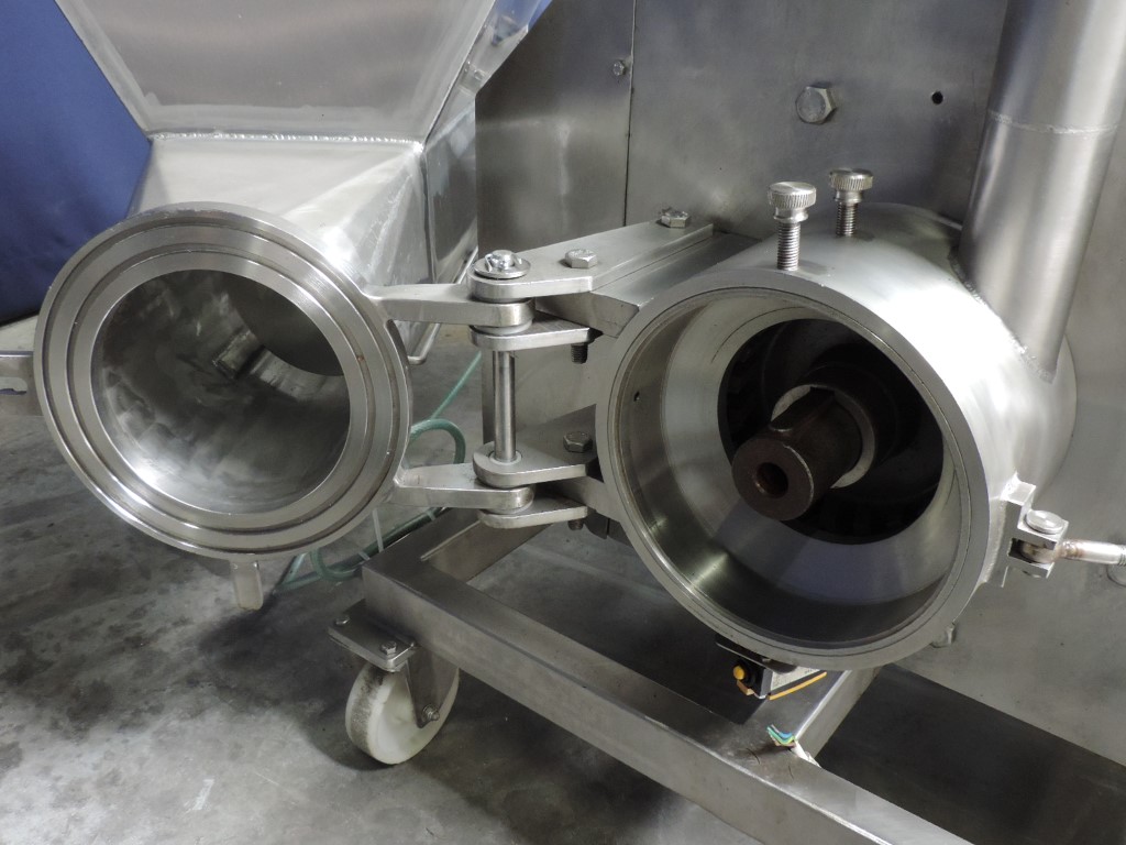Stainless steel micro cutter. Inlet hopper with stainless steel infeed screw. Motor 75 kW, 3000 rpm. Control panel. Screw width: 200 mm. Incuding knife set. Total dimensions: 250 x 80 x 150 cm.