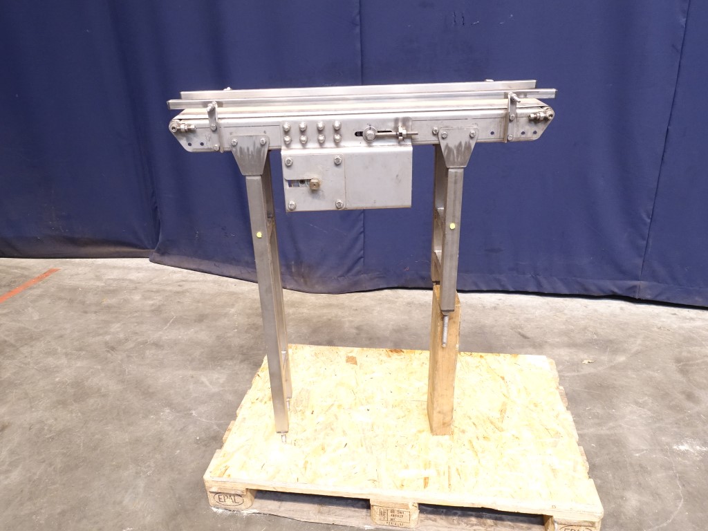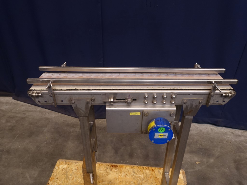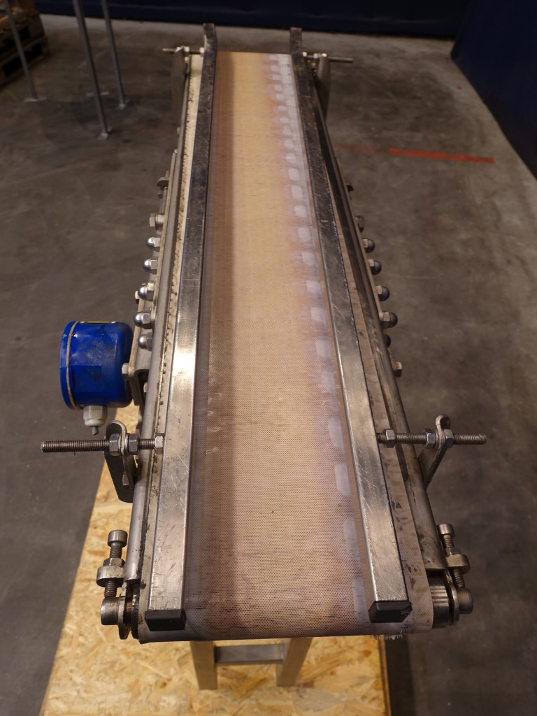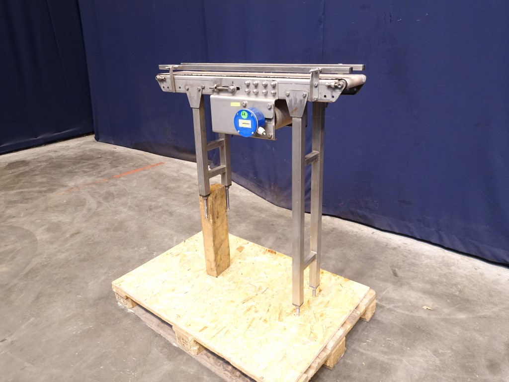 Belt conveyor. Effective belt: 18 x 95 cm. Drummotor: 0,225 kW. Belt speed 0,703 mtr/sec. Horizontal. Total Dimensions: 45 x 95 x 140 cm.