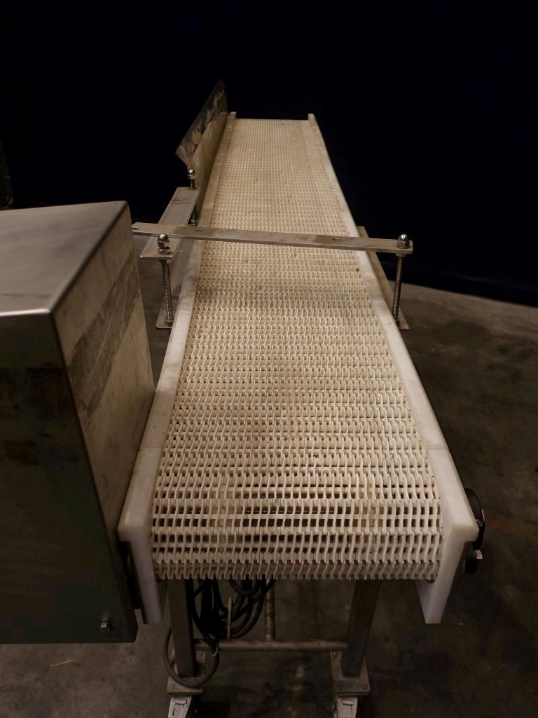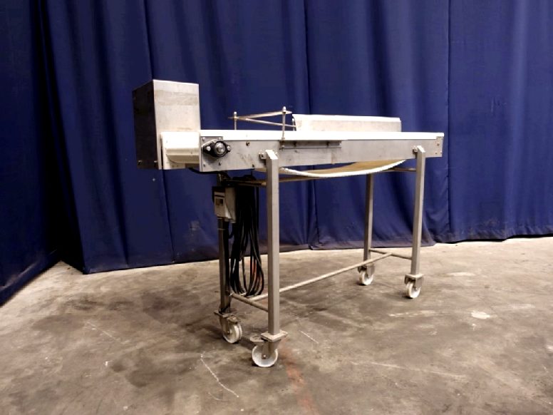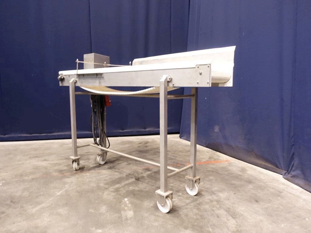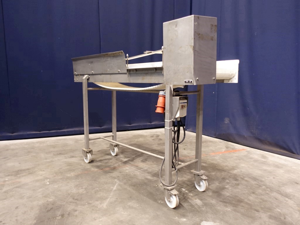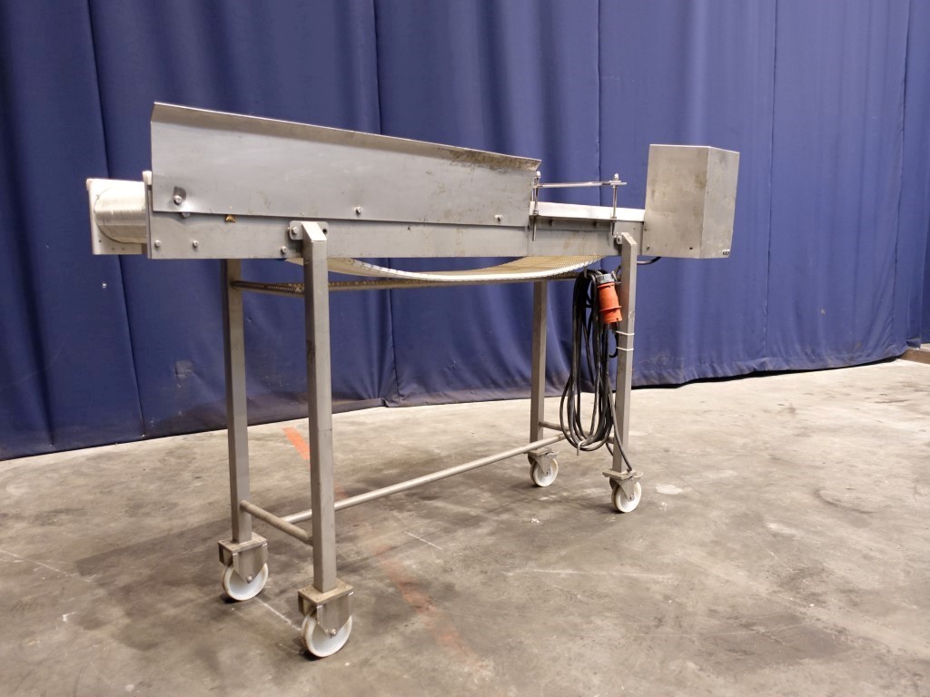 Chain conveyor. Effective Belt lxw: 200 x 28 cm. Motor: 0,37 kW, 32 rpm. On/Off switch box. Horizontal. Total dimensions: 210 x 60 x 120 cm.