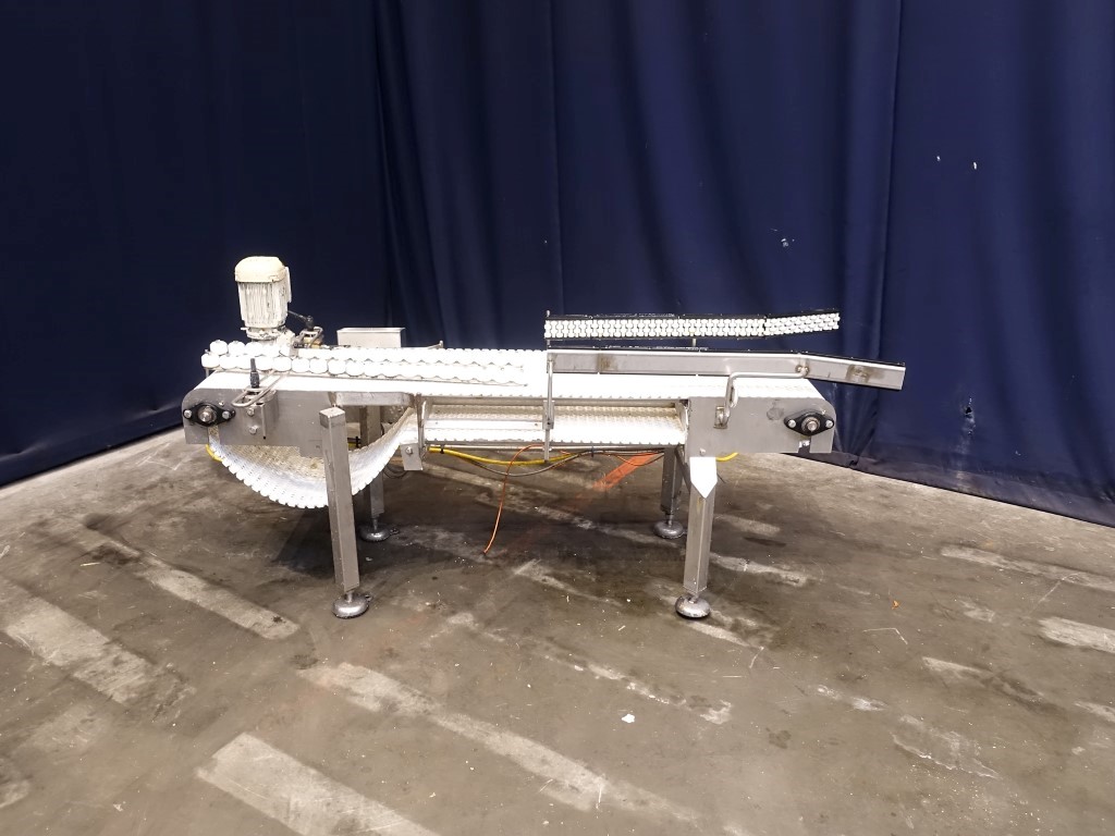 Chain conveyor. Chain width: 38 cm, length: 170 cm. Motor: 0,55 kW. Total dimensions: 180 x 70 x 90 cm.