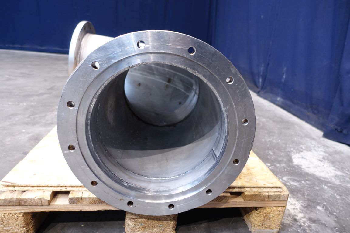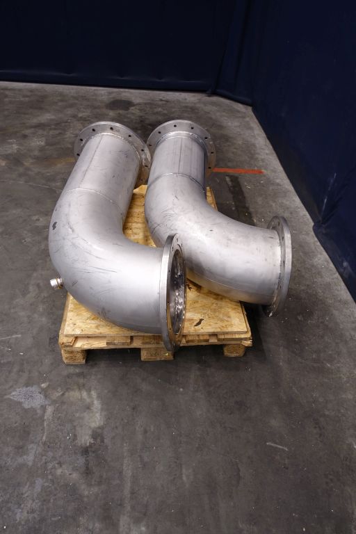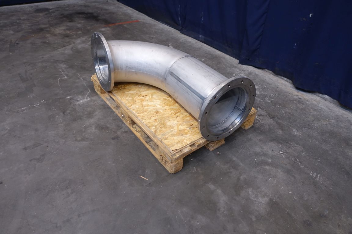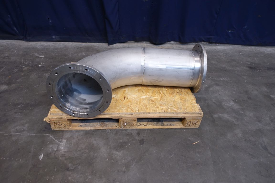 2 piece single jacketed pipe. B-unit. Diameter 31,5 cm. Length: 130 cm. 90 degrees bend. Flange connection DN315