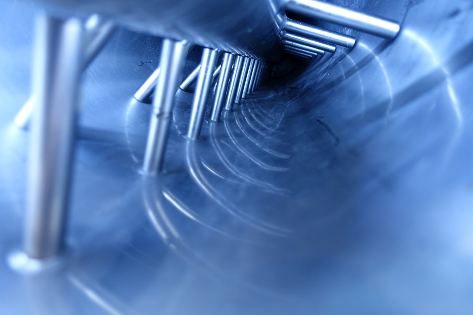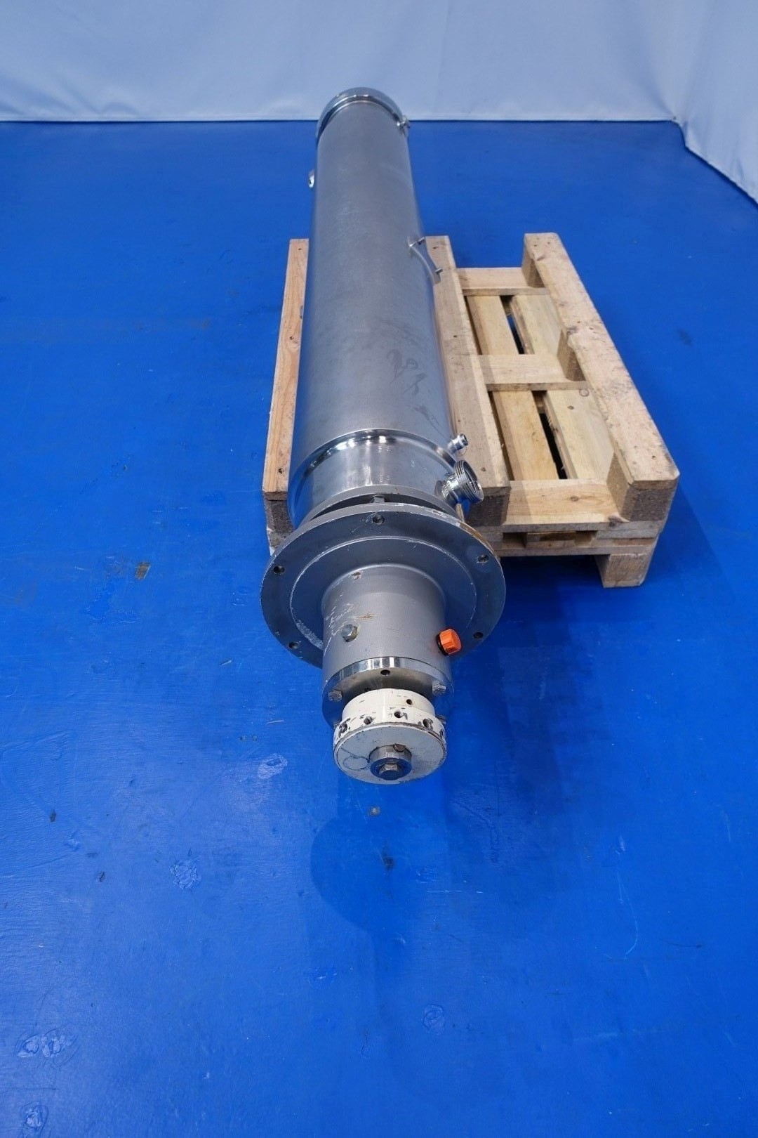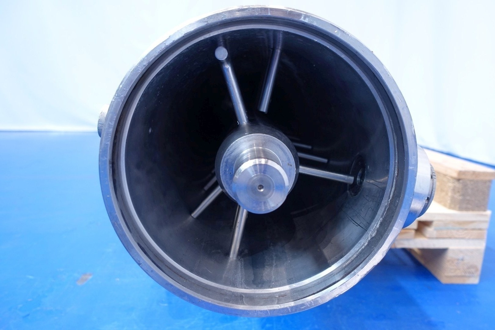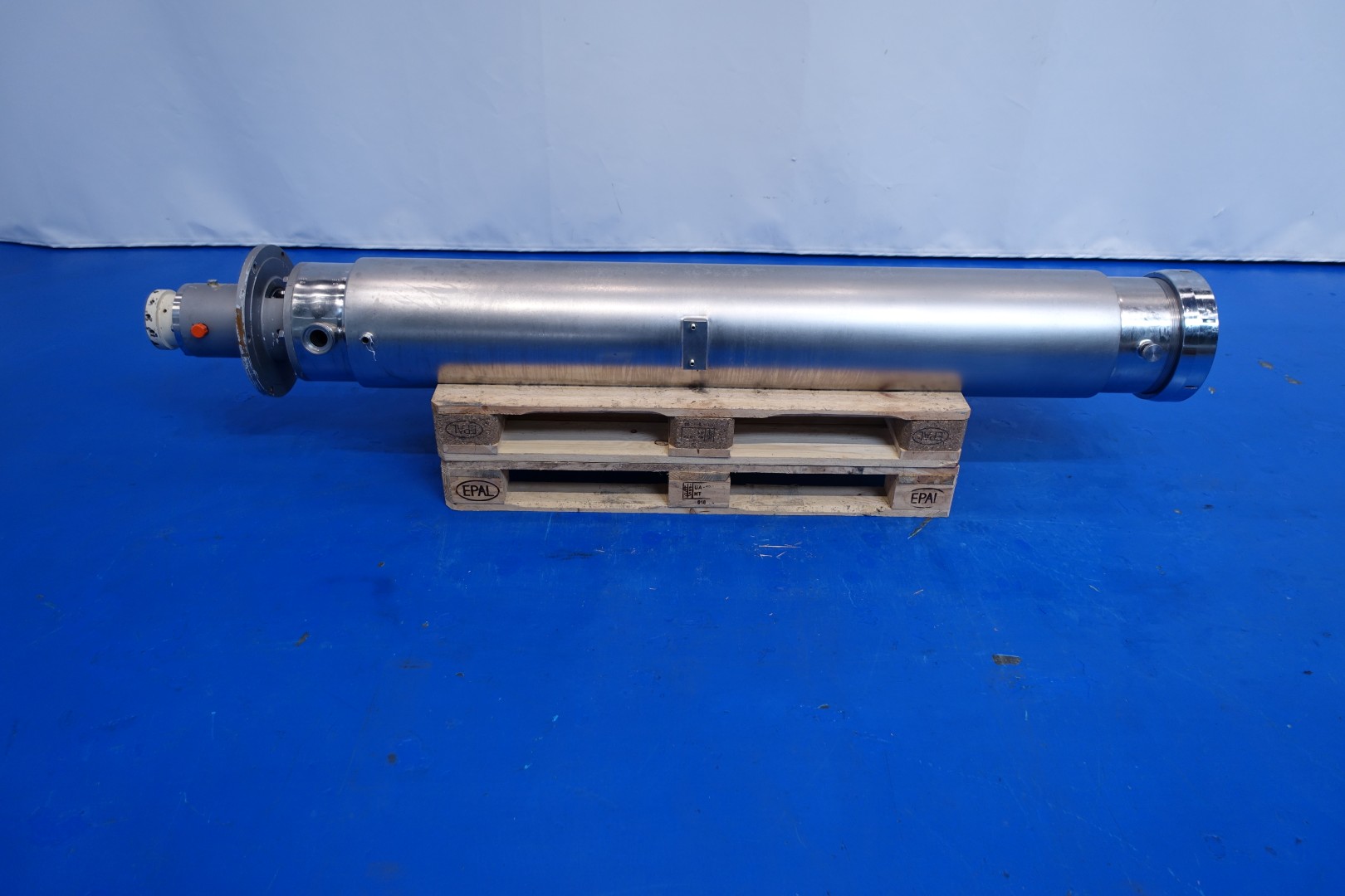 Double jacketed pinmixer. Shaft diameter 85 mm, 3 rows with 14 pins (42 pieces total) - cilinder diameter 250 mm with 2 rows with 19 and 20 (total 39) pieces. Cilinder length 195 cm. Connections: 2 x 2" Din and 2 x Ø 20 mm. Information on tube QC2 D400 and QC2 D552. Without drivework. Total dimensions 248x35x37 (lxwxh) cm - weight: 357 kg.