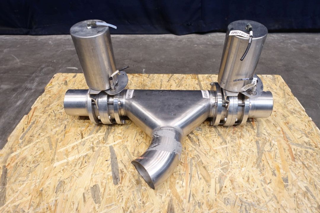 1x Trouser piece, 100 mm. 2x pneumatic valves, DN100.