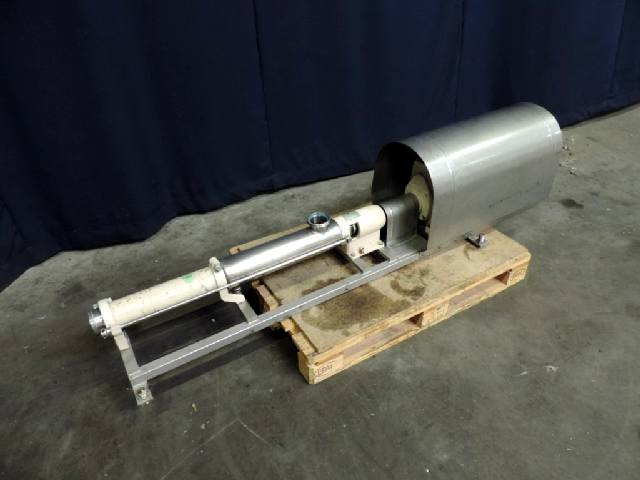 Stator diameter 4 cm, stator length 40 cm, Connections: in: 3'' DIN. n2 = pump speed 60 - 300 rpm. Stainless steel cover over electric motor. Frame mounted.