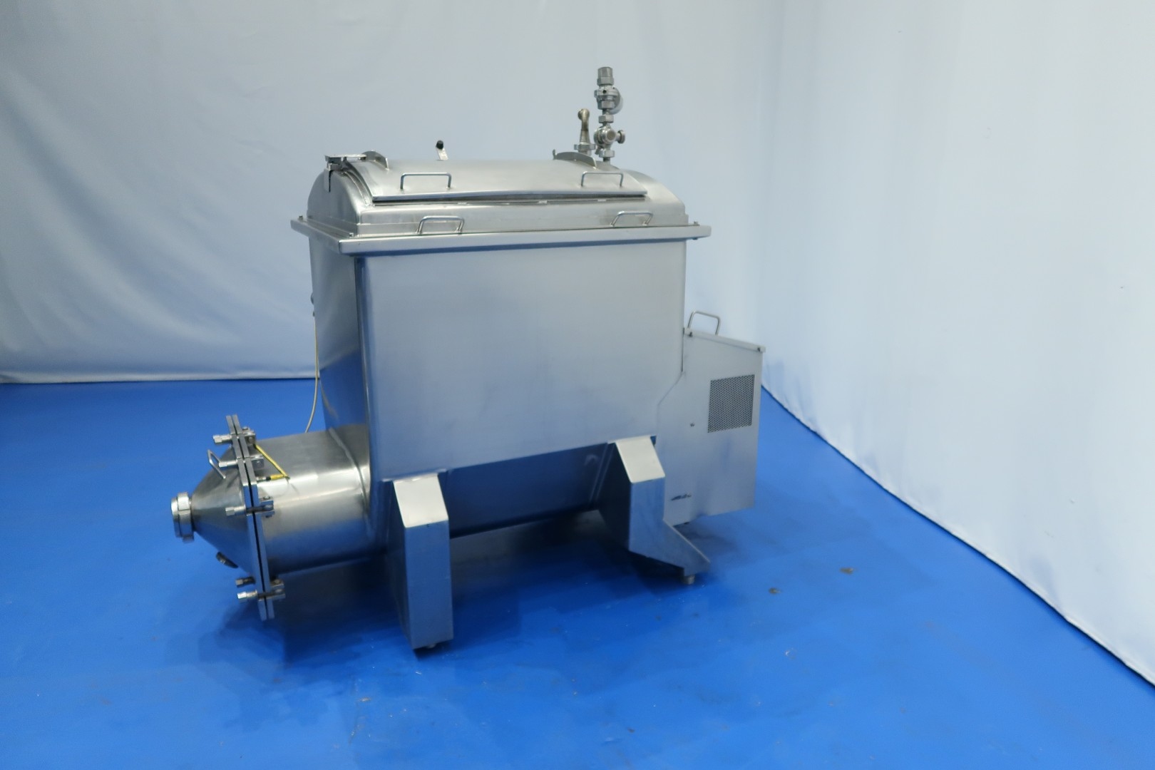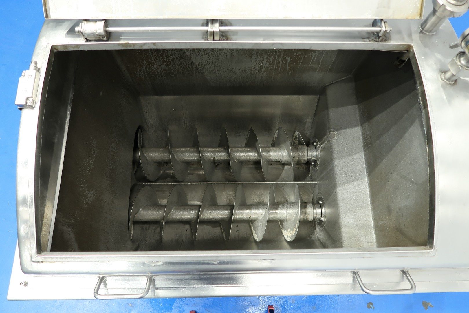 Closed Butter silo, with lid. 2 Augers with 1 motor. Main motor: 2,2 kW - 4,75 A - 50 Hz. Lid in top of 80x44 cm with contact sensor. CIP cleanable. Special plate finish on the inside to prevent butter from sticking. Outfeed connection DN100 for butter and 2,5"" for CIP -/-. Manual on/off operation switch with safety sensors. Total outside dimensions: 186x100x168 (lxwxh) cm - weight: 480 kg.