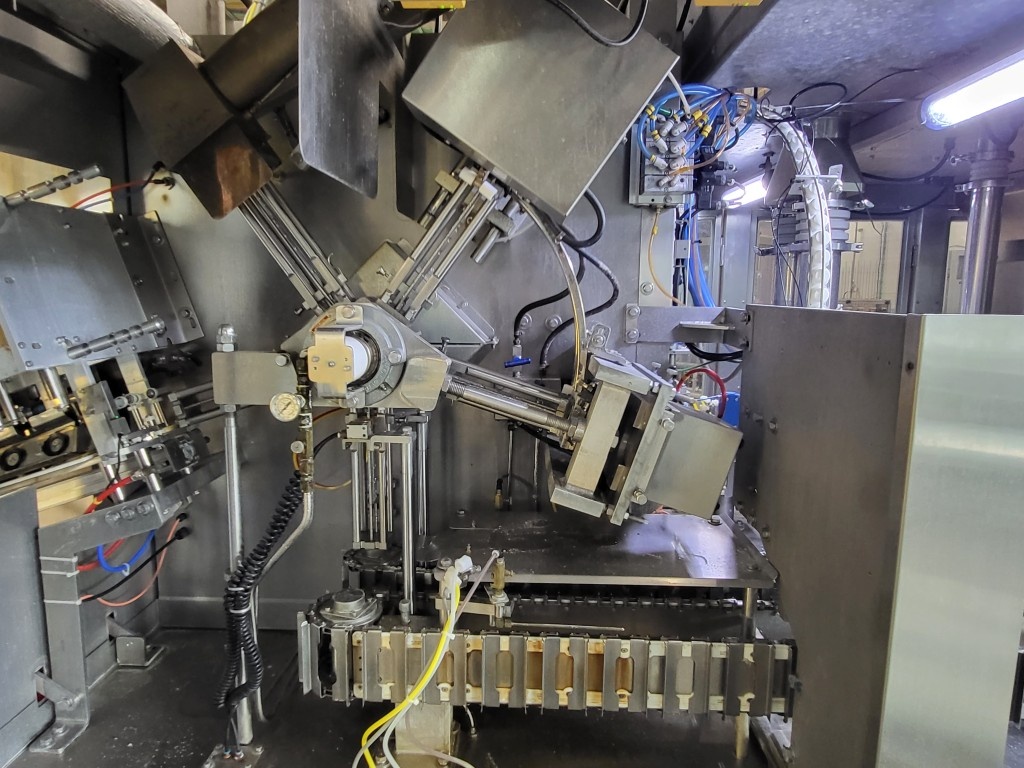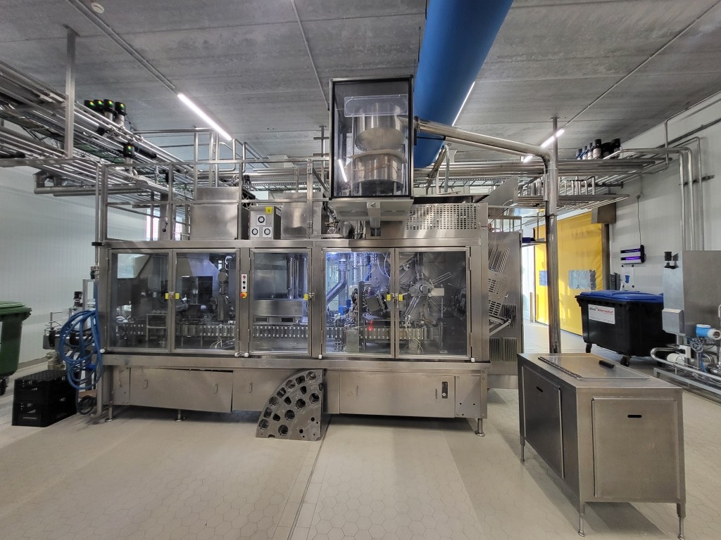 Fully automatic forming, sealing and filling machine. The machine is previously used for 1000 ml gable top cartons with SX Spout applicator system and Portola cap (resealable cap). Ø Cap: 23 mm. CIP cleanable, Including caps bunker for cap buffer, pneumatic feeder, feeder bowl cap feeding system, sterile air filter and peroxide disinfection system. Controls: Allen Bradley and servo driven technology provide repeatable package performance and automatically controls fill volumes and profiles based on product and carton size. Including documentation. (Instruction manual, parts manual, electrical diagrams)