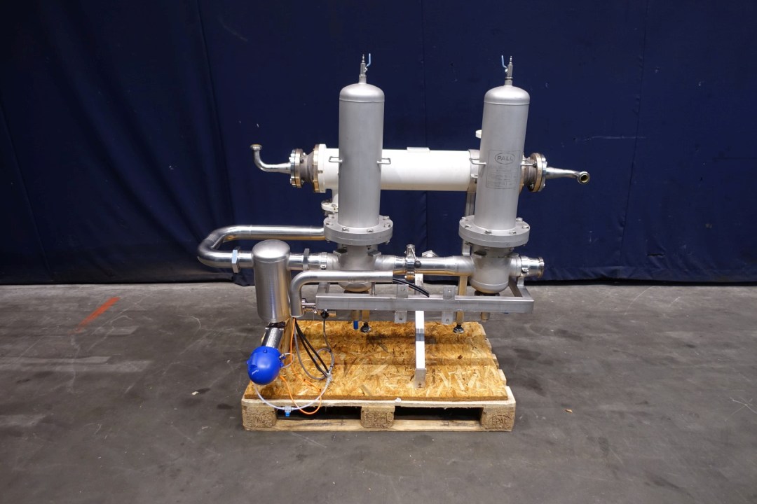 2 Air/gas filter housings in stainless on a frame each filterhous with 3 filters. With Total dimensions: 186x70x145 mm (lxwxh) - weight: 292 kg's. Cupper tubular heat exchanger to control air temperature.