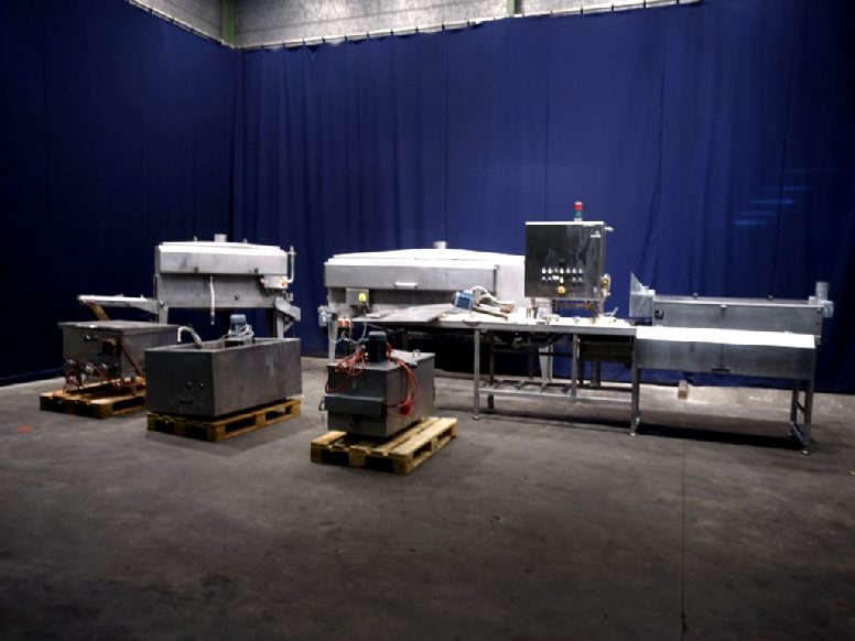 Parrafine machines. 3x Parafine transport conveyors with parrafine shower. 2x mobile parrafine melting container, elektric heated, including pump. 1 parrafine melting container, elektric heated.