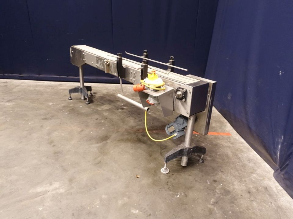 Chain conveyor. Effective chain: 220 x 19 cm. Motor: 0,18 kW n1: 1620 rpm - n2: 83 rpm. Horizontal. Total Dimensions: 230 x 55 x 100 cm.