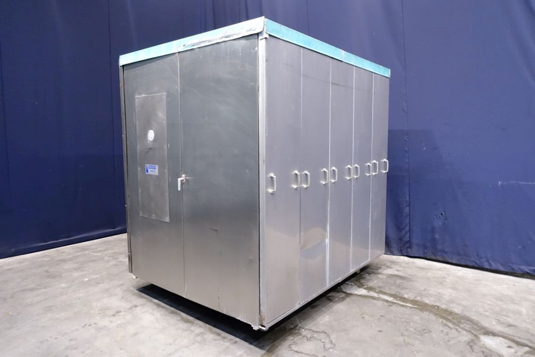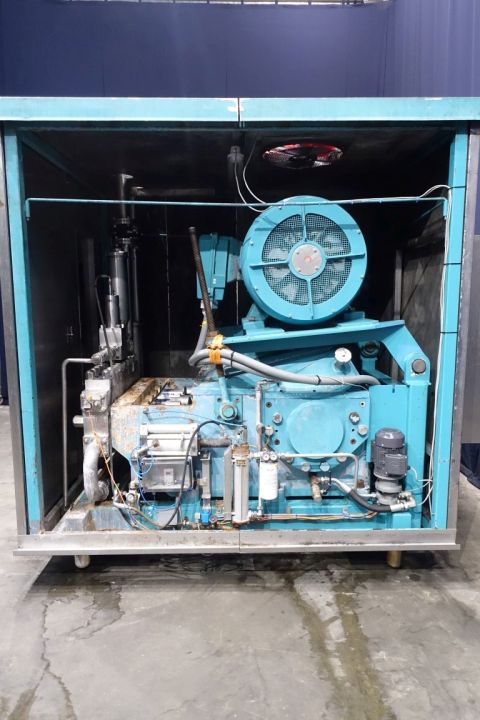 High pressure homogeniser. 1 stage with hydraulic pressure control. 5 Pistons, piston diameter: 58 mm and stroke: 90 mm. Stainless steel cladded in sound proof box < 80 dB (Rannie Milieu). Current motor power: 200 kW - 985 rpm and maximum pressure in current confirguration with this motor 200 bar. Overpressure valve. Electronic pressure transmitter. Pulsation demper on inlet and outlet. 2 Side inlet. Remote pressure control. Connections: 3''/3''. Control panel with Siemens S7-300 PLC. Total dimensions: 195 x 275 x 260 cm.