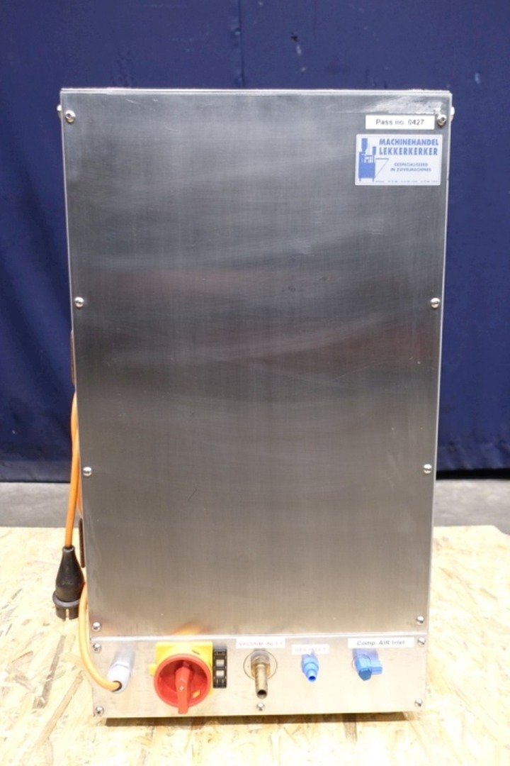 Regal Packaging LTD 22000. Laboratory Cup sealer with vacuum and gasflush. PLC controlled, possible to vacuum, gasflush and seal 1 cup at a time. Machine condition: good. Total dimensions: 54x45x72 (lxwxh) cm.