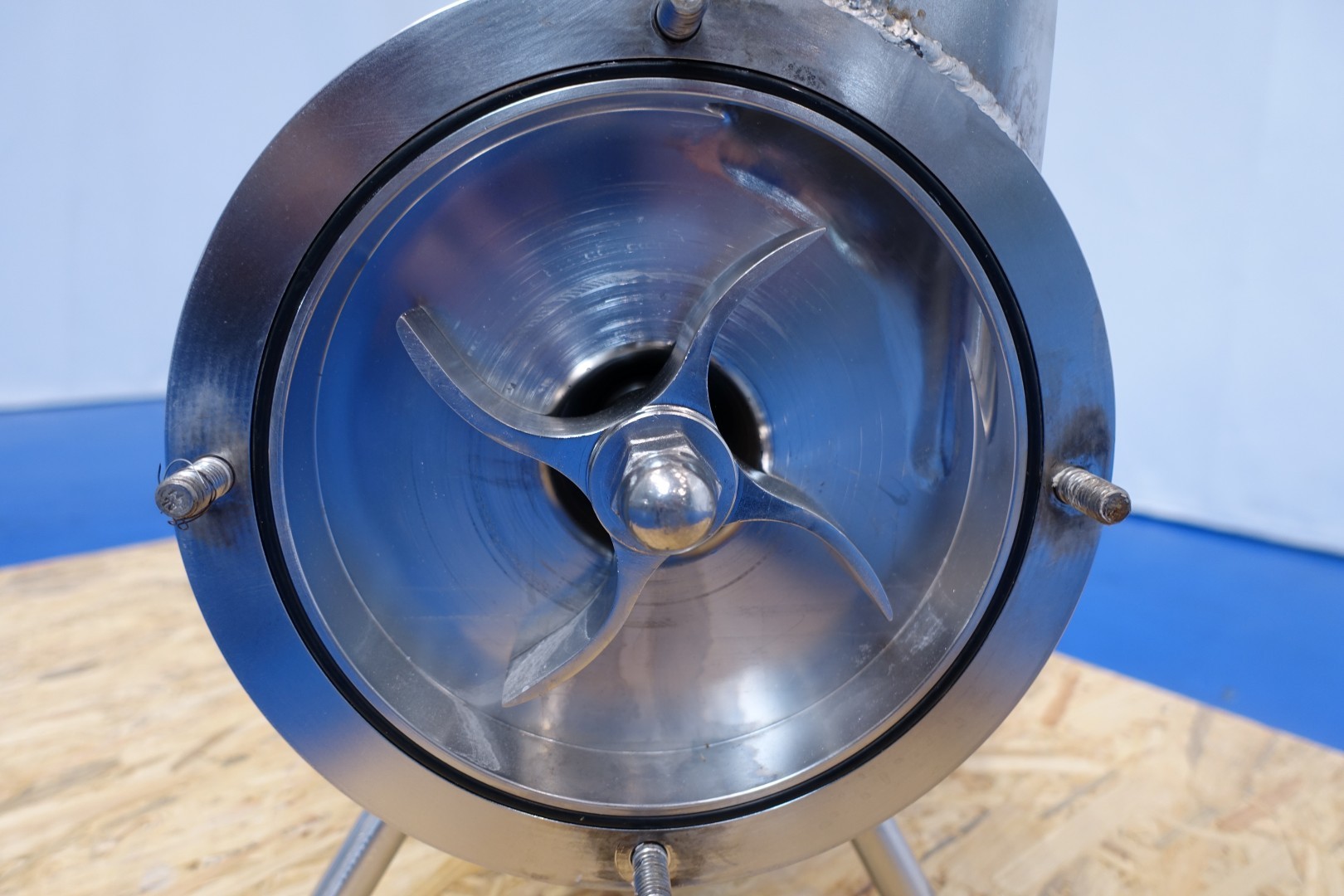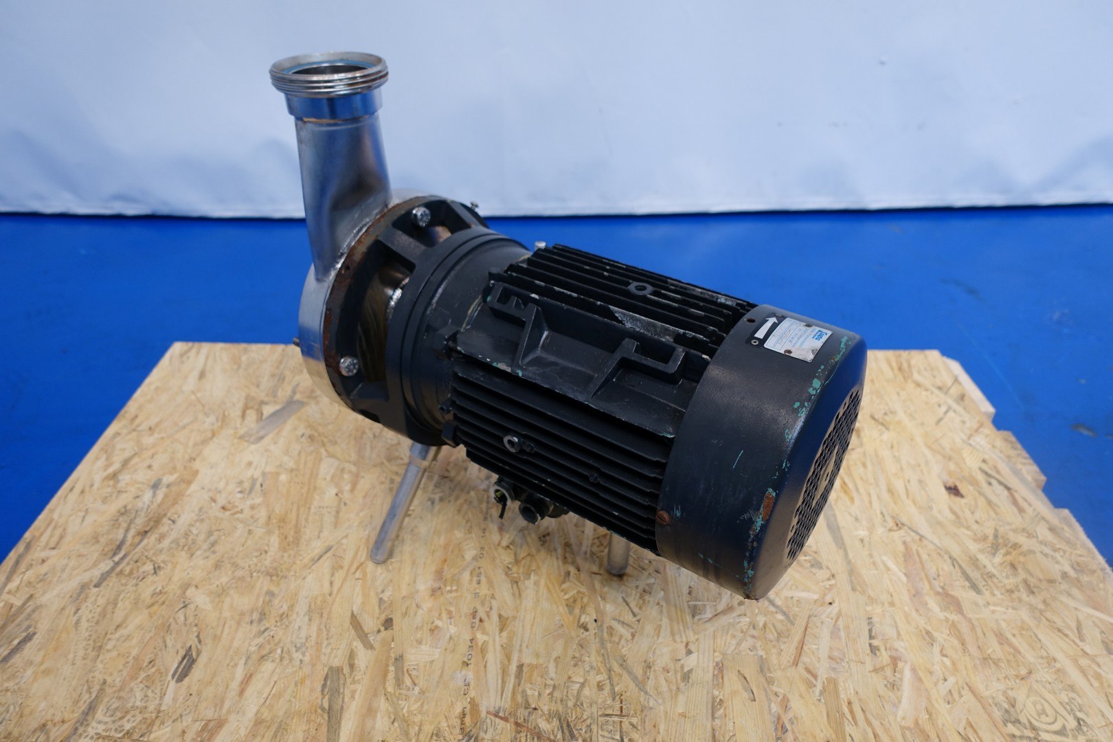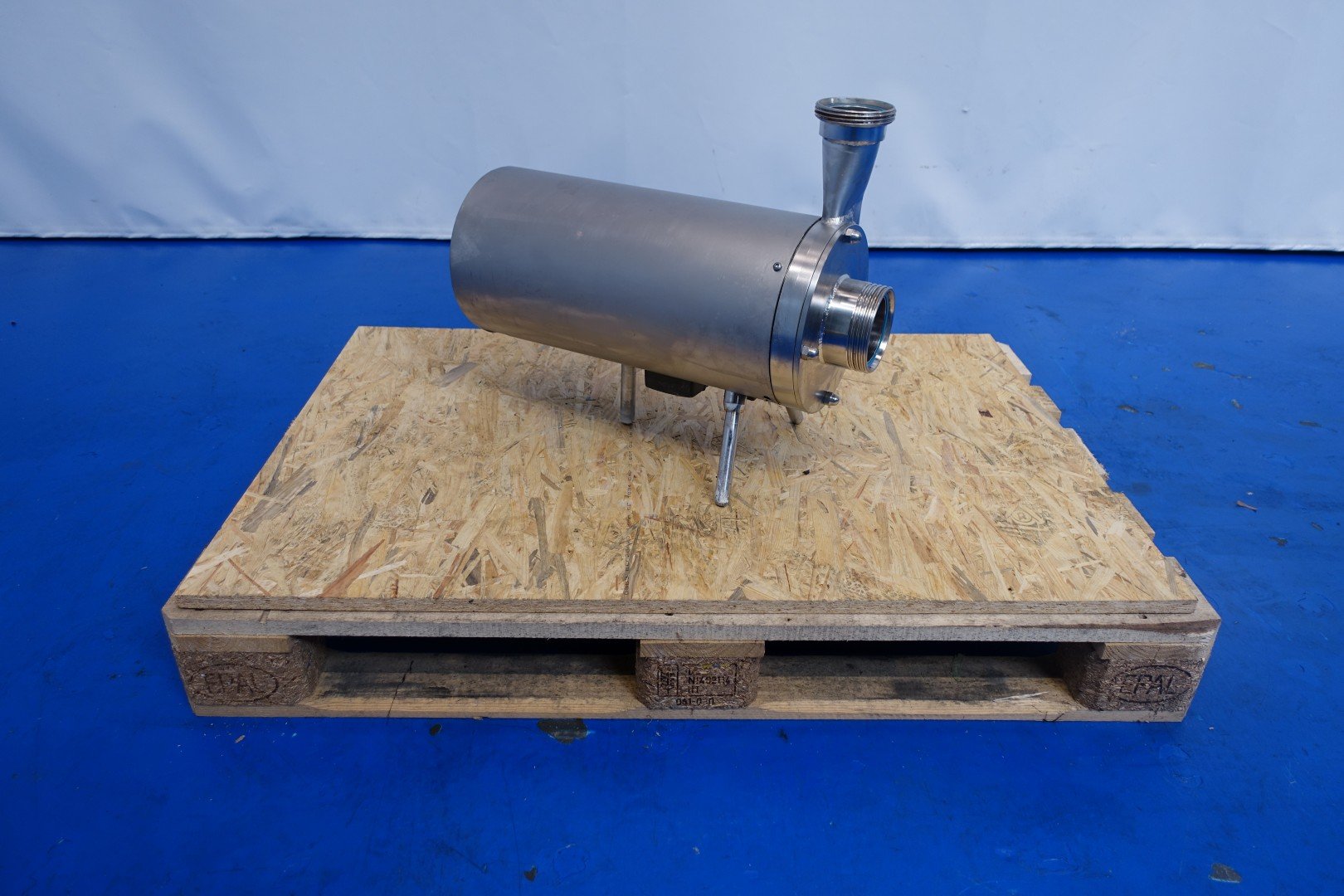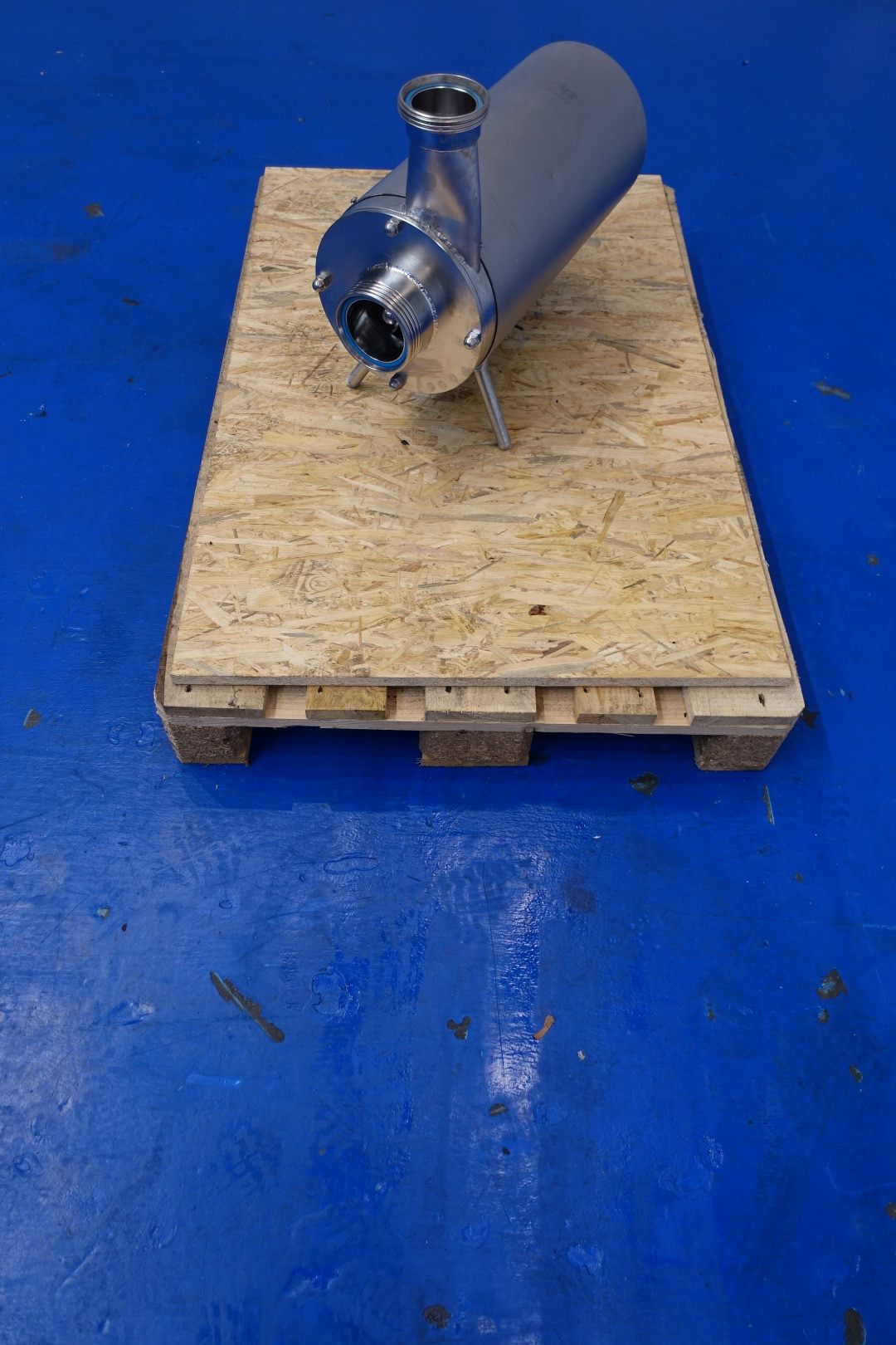Sanitary centrifugal pump. Current motor: 7,5 kW - 15,3 A - 2.920 rpm - 50 Hz. Impellor diameter: 150 mm. Connections (in): 96 mm Din / (out): 81 mm Din. Total dimensions: 58x24x48 (lxwxh) cm - weight: 98 kg.