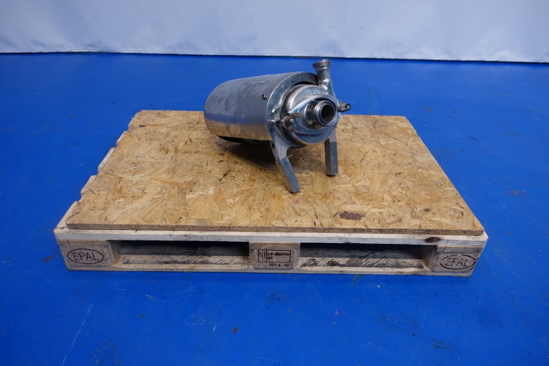 Sanitary centrifugal pump. No typeshield on motor. Impellor diameter: 155 mm. Connections: (in) 2,5" SMS / (out) 1,5" SMS. Total dimensions: 47x39x32 (lxwxh) cm - weight: 59 kg.
