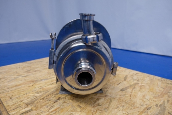 Sanitary centrifugal pump. Current motor: 3,0 kW - 6,1 A - 2.890 rpm - 50 Hz - 220-420 V. Impellor diameter: 135 mm. Connections: (in) 2,5" SMS / (out) 2" SMS. Total dimensions: 58x24x38 (lxwxh) cm - weight: 67 kg.