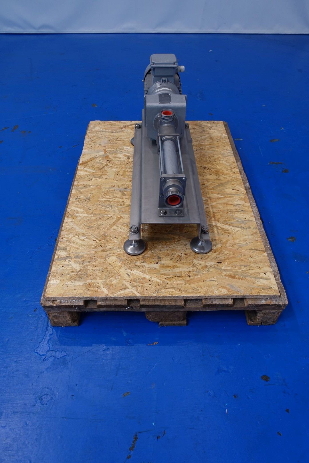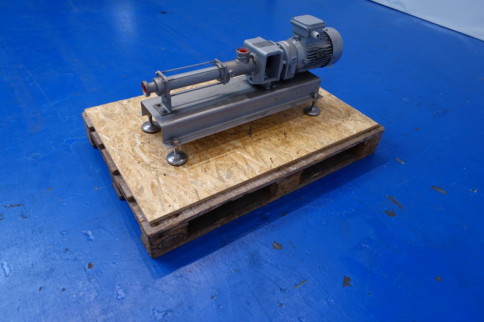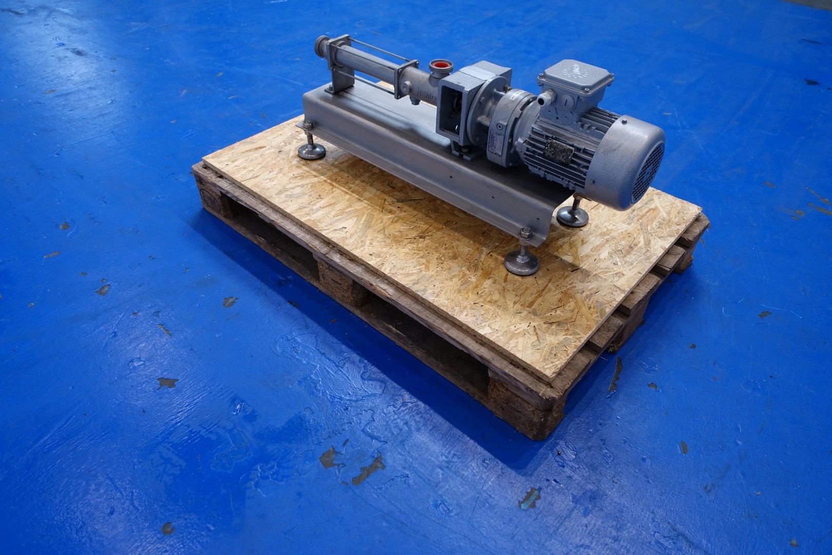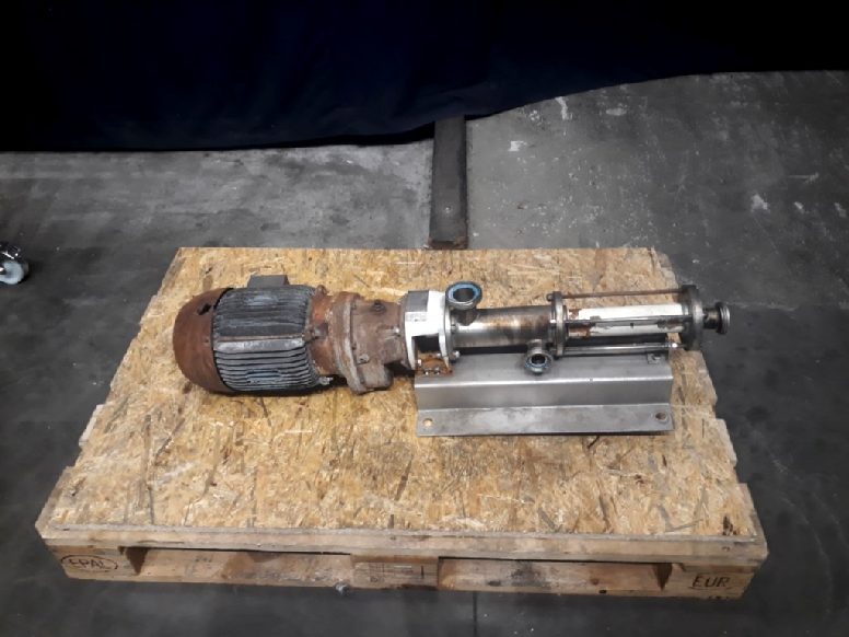 Already reconditioned Nemo mono pump / progressing cavity pump. Komm. Nr. order no.: 63005406. Speed: 256/560 rpm. Prod. temp. 20/30°C. Motor: 1,5 kW - 3,6 A - 1.395 rpm - 50 Hz. Nord gearbox, output speed: 368 rpm. Frame mounted with adjustable feet. Connections in: 1,5" Din - out 1,5" Din. Dimensions: 93x32x42 (lxwxh) cm - weight: 76 kg.
