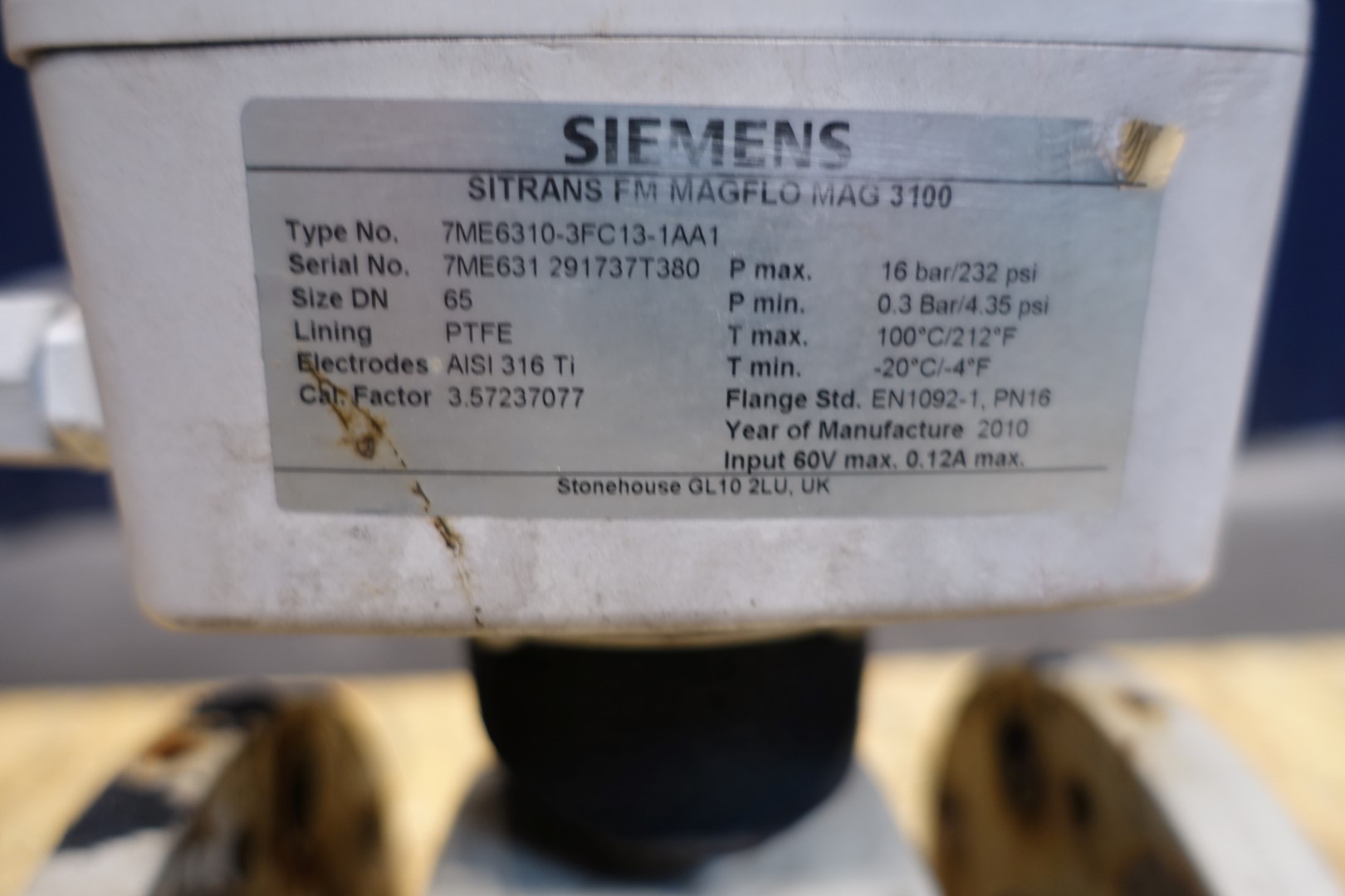 Electromagnetic flow meter MAGFLO 3100 equipped with Sitrans FM Magflo MAG5000 transmitter. Flange connections DN65. With electronic display.