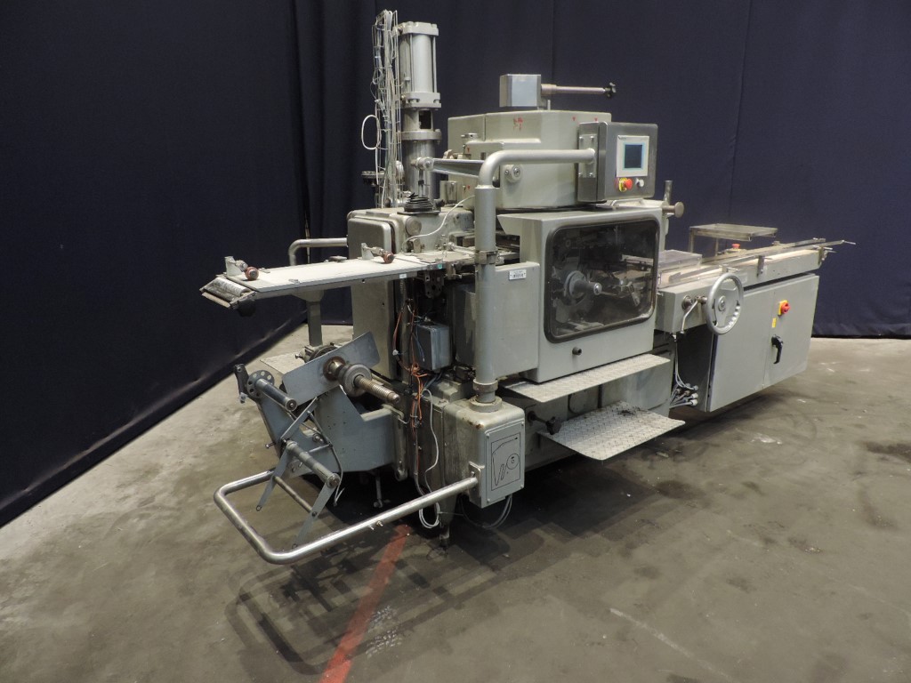 Full automatic filling and wrapping machine for margarine in aluminum foil or parchment paper. Product feed by direct link up with compensator (CIP), butterfly valve, bend and pressure relief valve. Photo cell for print centering device. Outfeed conveyor. Format set 500 gram, rectangular, 140 x 80 x 50 mm. Control panel with PLC control (Siemens S7) and Siemens OP. Instruction manual available. Reconditioned in 2010 by Lekkerkerker Dairy & Food Equipment. Has been running together with Norreg packer (STN12961) Outside dimensions: 4 x 2,1 x 2,3 mtr. Weigth: 2750 kg.