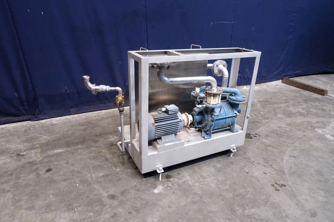 The SIHI sterling liquid ring vacuum pump LPHE is a two-stage positive displacement pump in a simple but robust design with various specific features. Such as non-polluting due to virtually isothermal compression, oil-free (no lubrication in the pressure chambers), pumping of almost all gases and vapors, small quantities of system fluid can be pumped, easy to maintain and reliable in operation, low noise emissions and virtually vibration-free running, standard O -ring seal, central drainage and no metallic contact with rotating parts. SIHI LPHE45311 - BN1350140 - 2609005. Engine; VEM K219112 - 4,0 kW - 8,8 A - 1435 rpm - 50 Hz. Total dimensions: 110 x 70 x 97 cm.